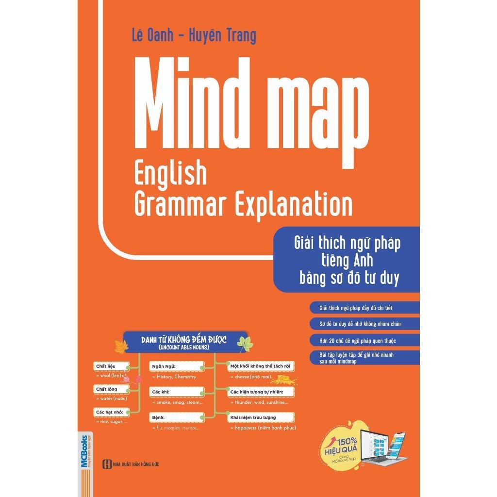 Vì những lý do trên, MCBooks cho ra mắt quyển sách Mind map English grammar explanation - Giải thích Ngữ pháp tiếng Anh bằng sơ đồ tư duy. Cuốn sách tổng hợp các chủ điểm ngữ pháp cơ bản, đầy đủ, dễ hiểu, kèm theo ghi chú, giải thích cùng các ví dụ minh họa vô cùng cụ thể, giúp người học nắm được các tình huống, bối cảnh sử dụng của từng cấu trúc ngữ pháp.