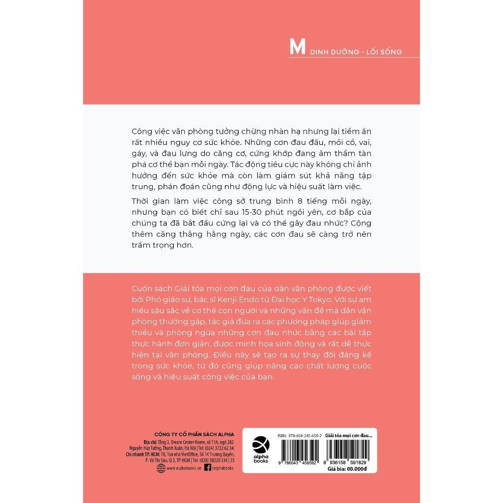 Cuốn sách "Giải tỏa mọi cơn đau của dân văn phòng" được viết bởi Phó giáo sư, bác sĩ Kenji Endo từ Đại học Y Tokyo Với sự am hiểu sâu sắc về cơ thể con người và những vấn đề mà dân văn phòng thường gặp, tác giả đưa ra các phương pháp giúp giảm thiểu và phòng ngừa những cơn đau nhức bằng các bài tập thực hành đơn giản, được minh họa sinh động và rất dễ thực hiện tại văn phòng. Điều này sẽ tạo ra sự thay đổi đáng kể trong sức khỏe, từ đó cũng giúp nâng cao chất lượng cuộc sống và hiệu suất công việc của bạn.