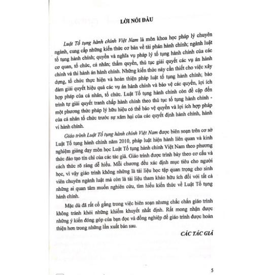 Giáo trình Luật Tố tụng hành chính Việt Nam được biên soạn trên cơ sở Luật Tố tụng hành chính năm 2010, pháp luật hiện hành liên quan và kinh nghiệm giảng dạy môn học Luật Tố tụng hành chính Việt Nam theo phương thức đào tạo tín chỉ của các tác giả. Giáo trình được trình bày theo cơ cấu và cách thức rõ ràng dễ hiểu. Mỗi chương đều xác định mục tiêu cho người học, vì vậy giáo trình không những là tài liệu học tập quan trọng cho sinh viên chuyên ngành luật mà còn là tài liệu tham khảo hữu ích đối với tất cả những ai quan tâm muốn nghiên cứu, tìm hiểu kiến thức về Luật Tố tụng hành chính.
