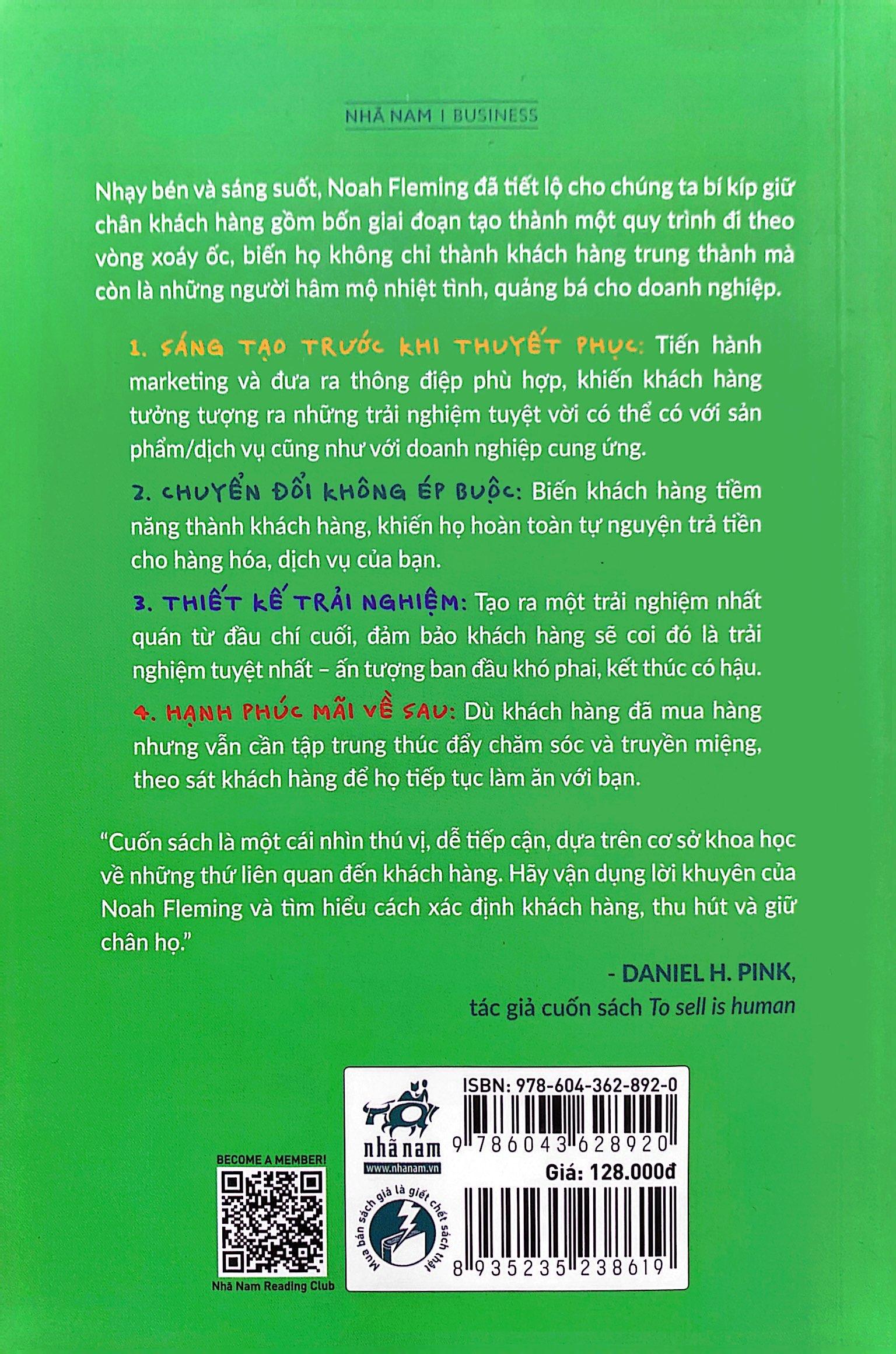 “Cuốn sách là một cái nhìn thú vị, dễ tiếp cận, dựa trên cơ sở khoa học về những thứ liên quan đến khách hàng. Hãy vận dụng lời khuyên của Noah Fleming và tìm hiểu cách xác định khách hàng, thu hút và giữ chân họ.” -Daniel H. Pink, tác giả cuốn sách To sell is human