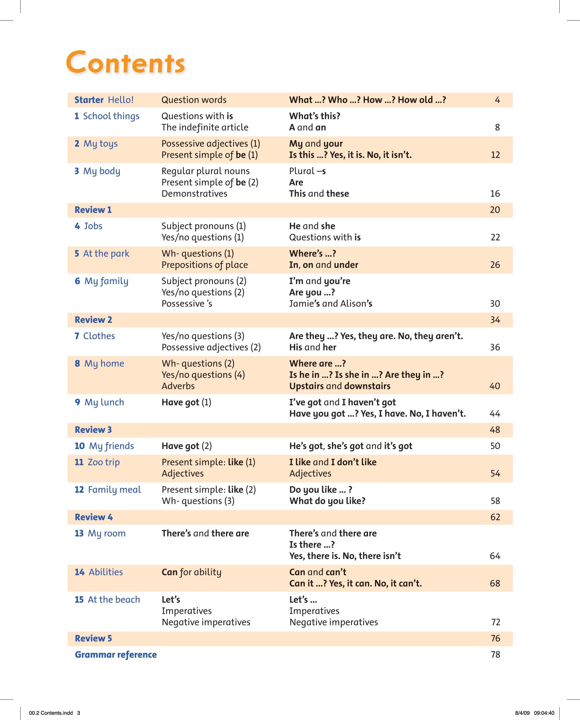 Kiến Thức Các Em Sẽ Đạt Được Sau Khi Học Grammar Friends 1