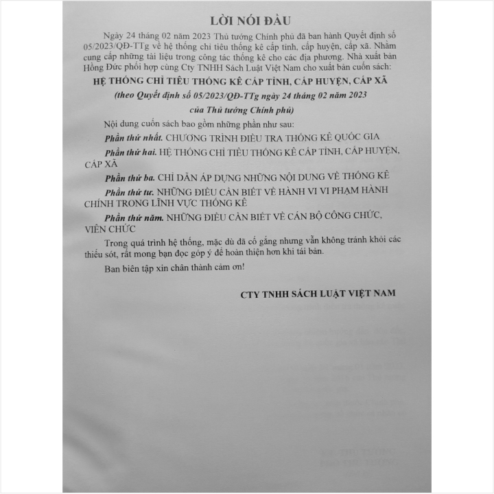 ✨Sách Hệ Thống Chỉ Tiêu Thống Kê Cấp Tỉnh, Cấp Huyện, Cấp Xã theo Quyết định 05/2023/QĐ-TTg ngày 24/02/2023 - V2205T