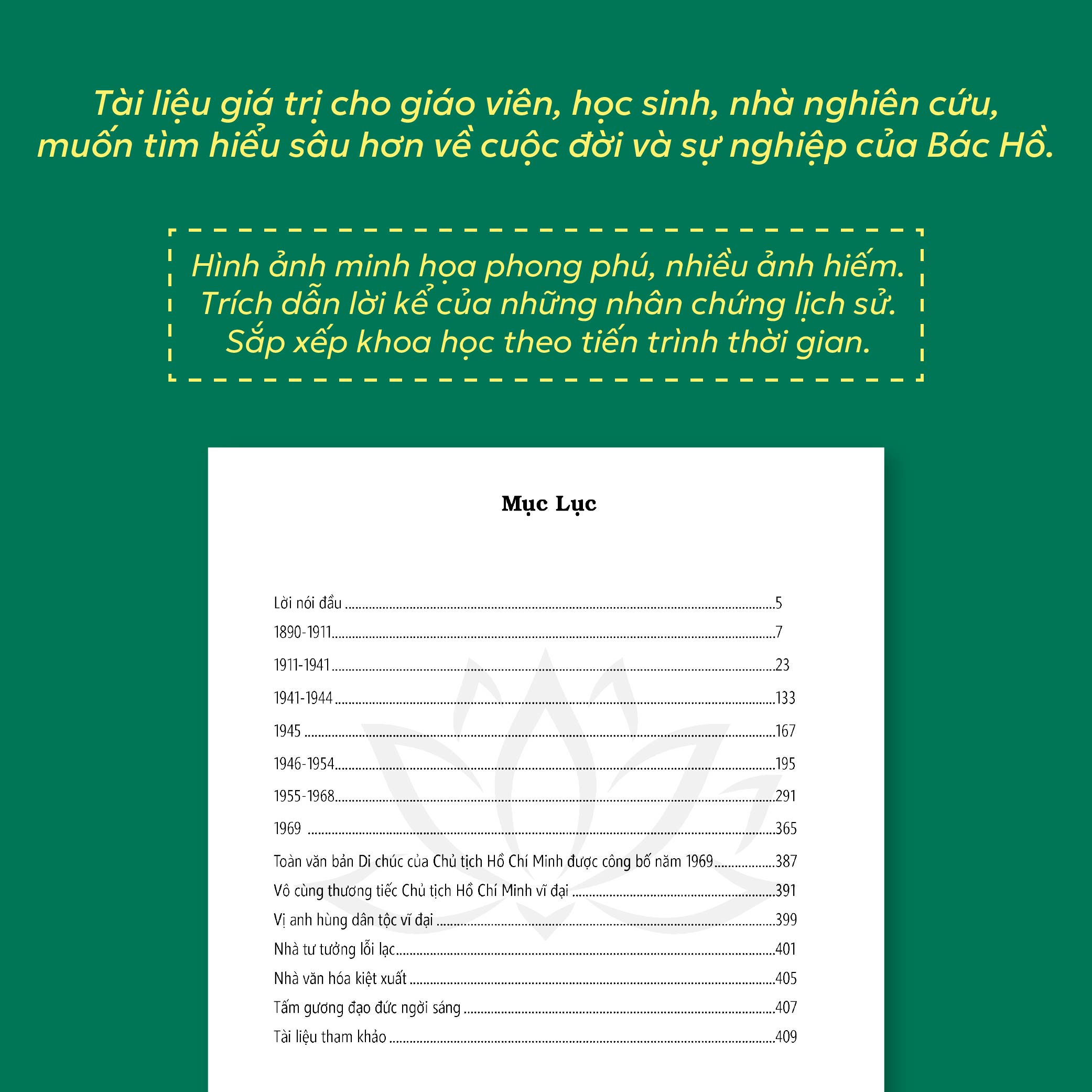 Mua tại TiktokTác phẩm được trình bày như một câu chuyện kể lại những diễn biến chính trong cuộc đời và sự nghiệp của Chủ tịch Hồ Chí Minh với các sự kiện được chia theo từng giai đoạn: 1890-1911; 1911-1941; 1941-1944; 1945; 1946-1954; 1954-1968 và năm 1969. Ngoài những tư liệu lịch sử được công bố, cuốn sách còn có hơn 140 ảnh tư liệu minh họa và trích nhiều câu chuyện, hồi ký của chính Chủ tịch Hồ Chí Minh, các nhân vật lão thành cách mạng hoạt động cùng thời với Người, cũng như lời kể từ các đồng chí thư ký, bảo vệ, giúp việc để minh hoạ rõ nét và sinh động cuộc sống đời thường của một Con Người Bình Dị Mà Vĩ Đại.