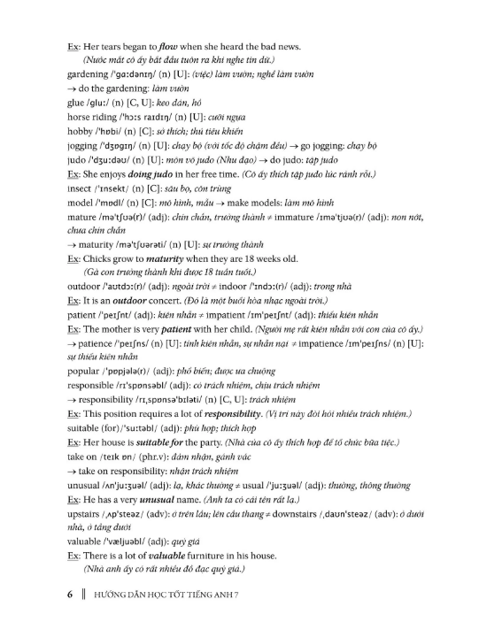- Từ vựng (Vocabulary): gồm tất cả các từ mới trong bài; các từ được phiên âm theo hệ phiên âm quốc tế, có nghĩa sát với nghĩa trong bài học và có một số ví dụ minh họa.
