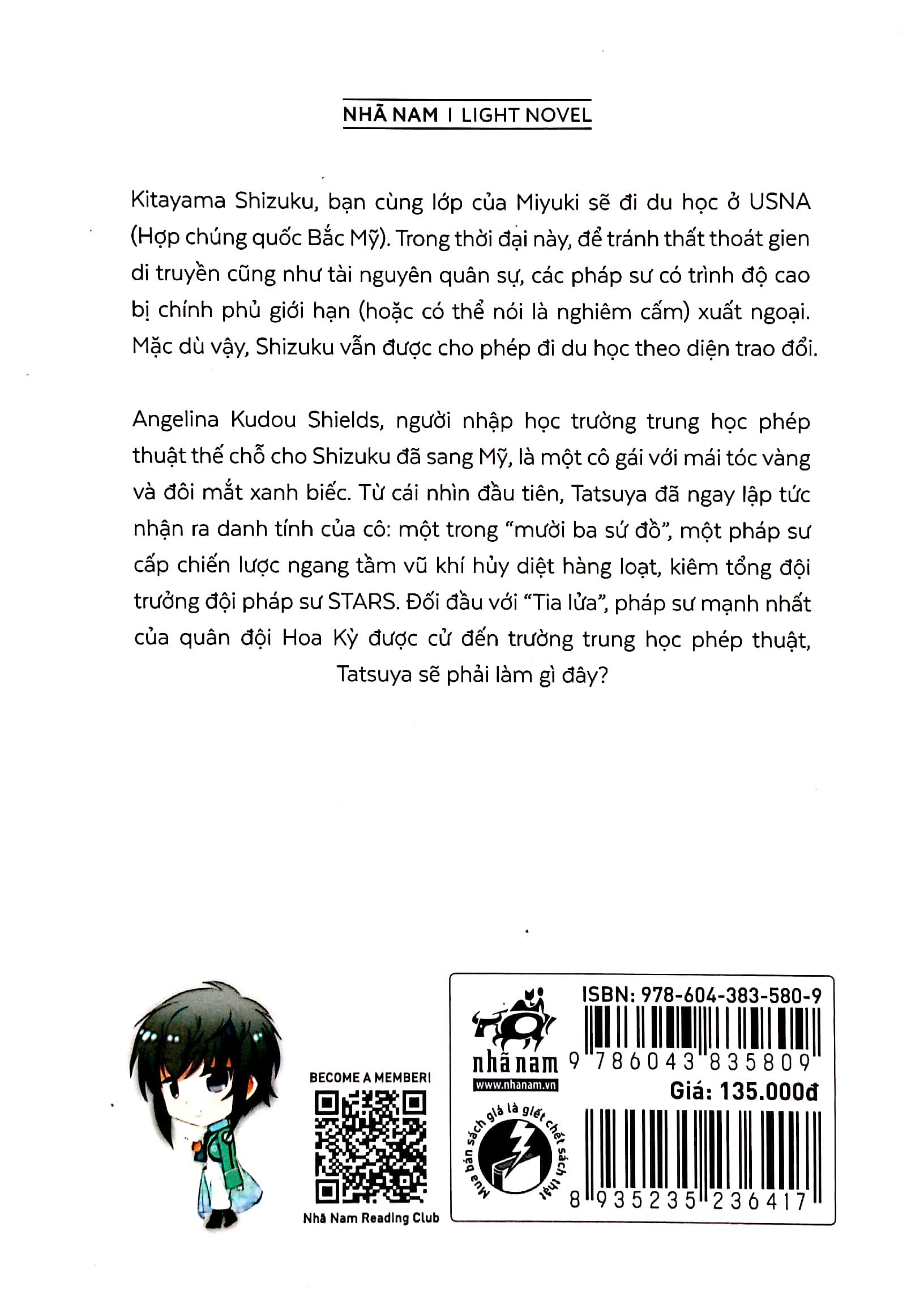 Angelina Kudou Shields, người nhập học trường trung học phép thuật thể chỗ cho Shizuku đã sang Mỹ, là một cô gái với mái tóc vàng và đôi mắt xanh biếc. Từ cái nhìn đầu tiên, Tatsuya đã ngay lập tức nhận ra danh tính của cô một trong “mười ba sứ đồ”, một pháp sư cấp chiến lược ngang tầm v.ũ khí hủy diệt hàng loạt, kiêm tổng đội trưởng đội pháp sư STARS. Đối đầu với “Tia lửa”, pháp sư mạnh nhất của quân đội Hoa Kỳ được cử đến trường trung học phép thuật, Tatsuya sẽ phải làm gì đây?