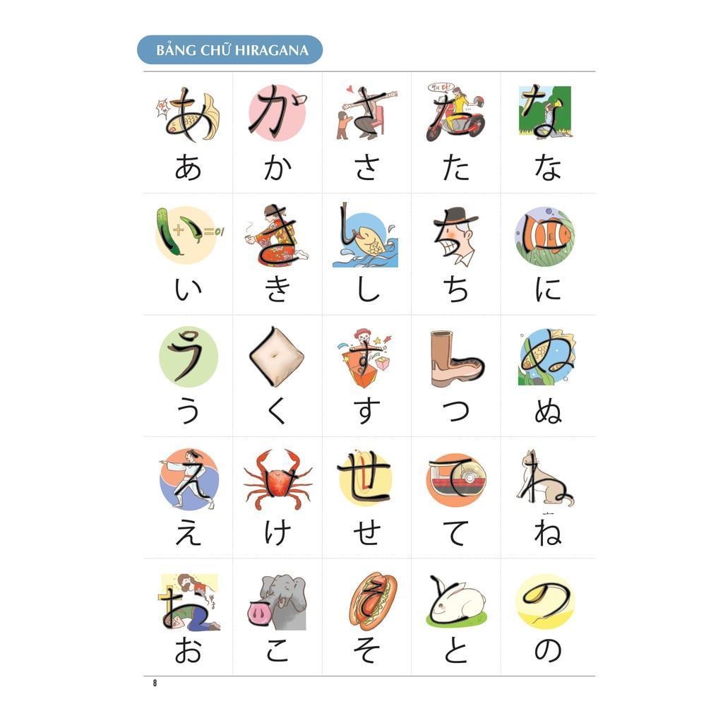 Cuốn sách giải thích chi tiết hai bảng chữ cái Hiragana và Katakana theo từng dòng để người học có thể dễ dàng viết theo, ghi nhớ và viết được chính xác chữ cái đó.
