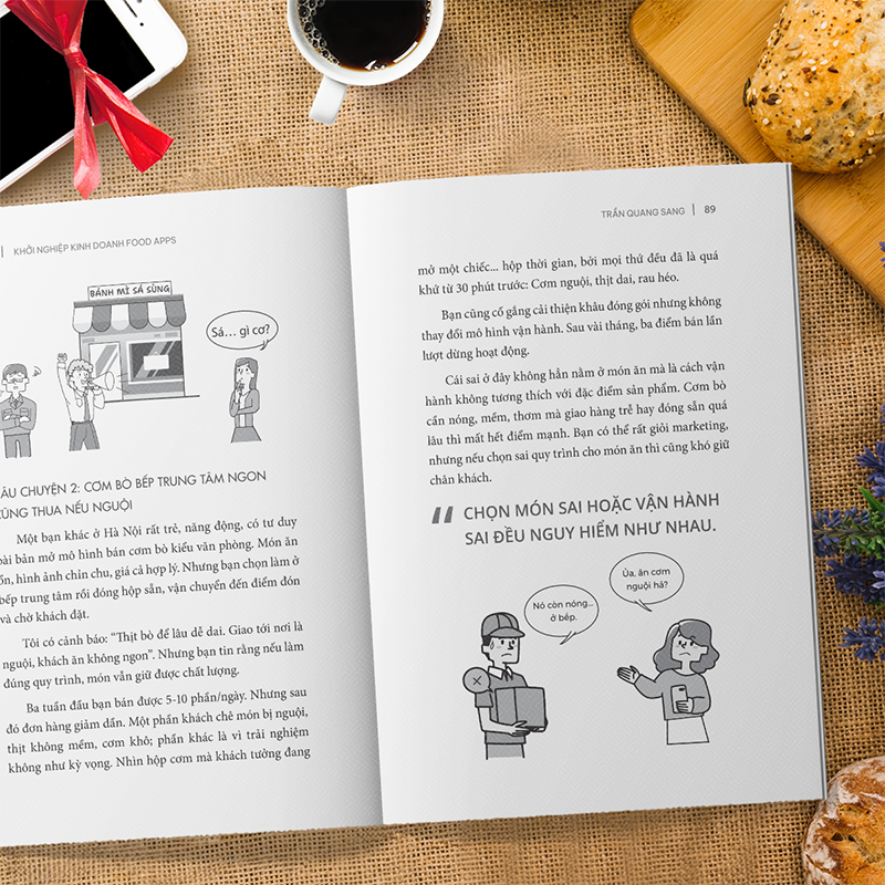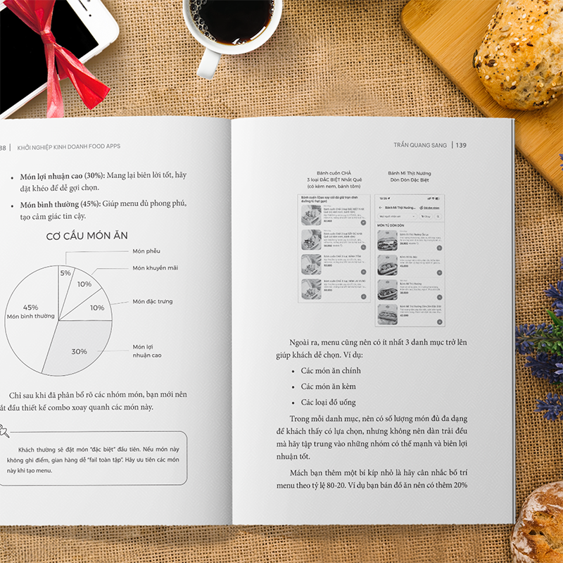 Cuốn sách gồm 8 chương, dẫn dắt người đọc từ tư duy nền tảng đến các kỹ năng thực chiến, giúp bất kỳ ai, kể cả người từng thất bại, có thể khởi nghiệp thành công và làm giàu trên các nền tảng giao đồ ăn như G.r.a.b Food, S.h.o.p.e.e Food…