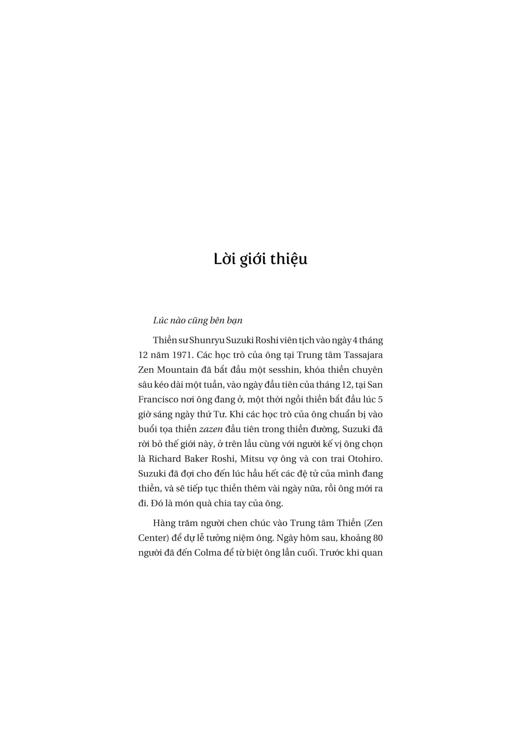 Không phải bao giờ cũng vậy ghi lại những bài giảng cuối cùng của thiền sư Suzuki trước khi ông qua đời. Thay cho một thái độ tránh né thế tục, xa lánh người học ở các thiền sư trong quá khứ, Shunryu Suzuki dùng sự hài hước, thân mật, cùng những câu chuyện gần gũi với đời thường khắc họa nên tinh thần đích thực của Thiền trong thế giới này.