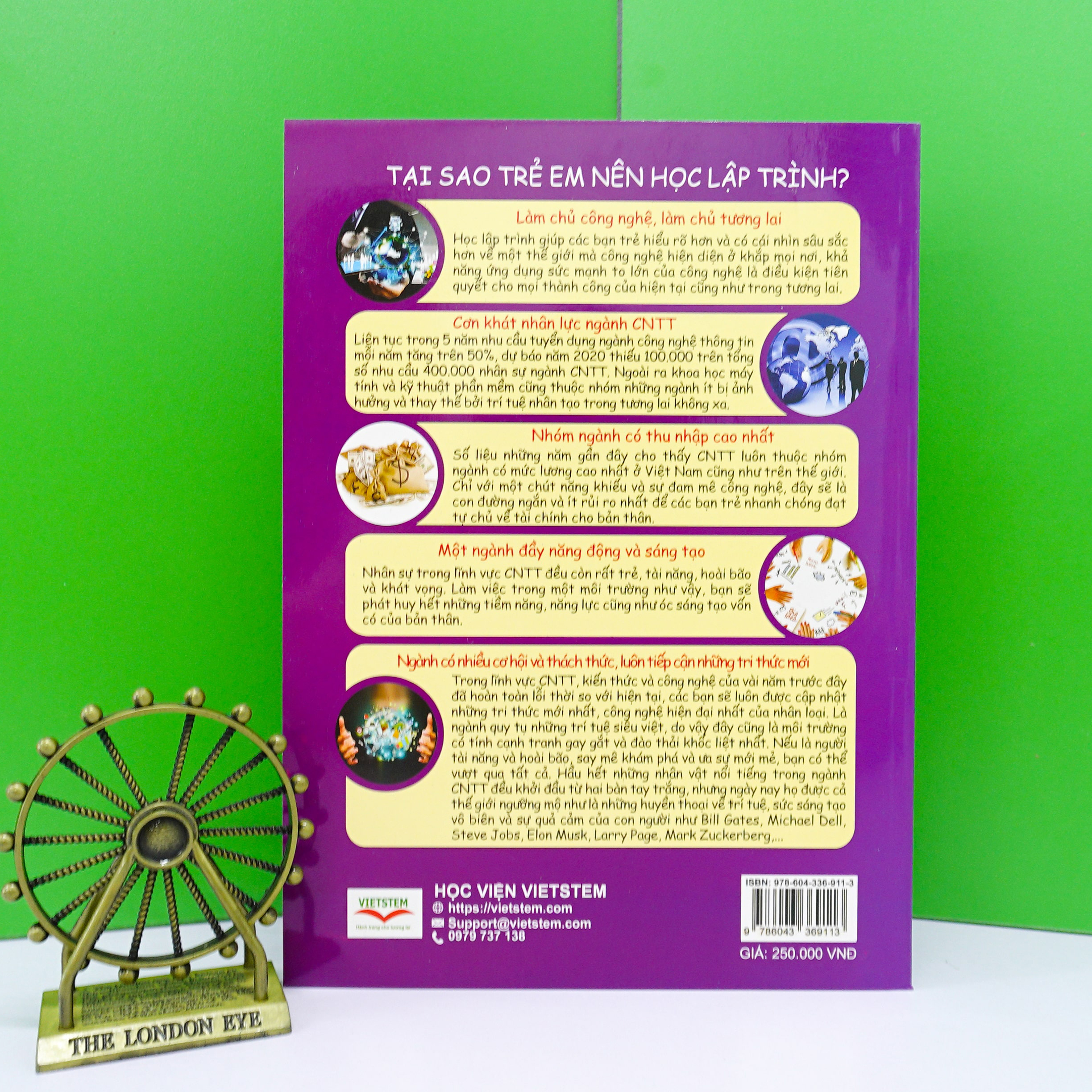 Combo 4 sách học lập trình kéo thả cho học sinh từ 6 - 18 tuổi 1. SÁCH "LẬP TRÌNH VỚI SCRATCH 3" Hướng dẫn học sinh từ 6 - 16 tuổi làm quen và
