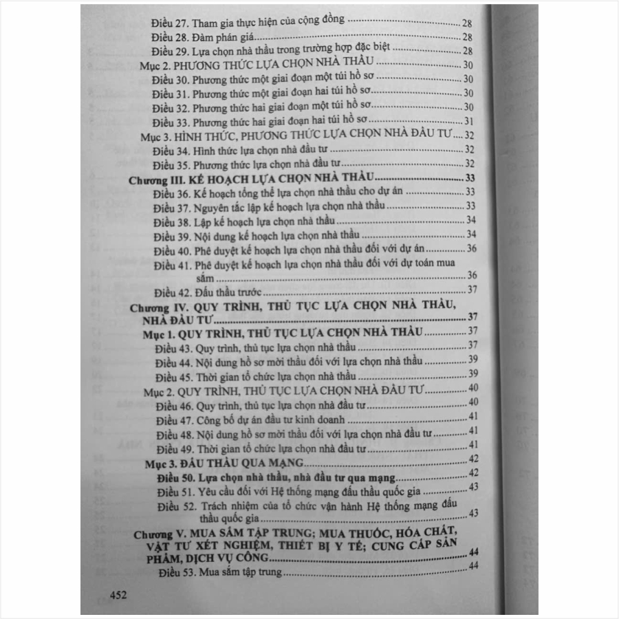 Nội dung cuốn sách bao gồm Luật Đấu thầu năm 2013 (sửa đổi năm 2016, 2017, 2019, 2020); các Nghị định của Chính phủ hướng dẫn chi tiết thi hành một số điều của Luật