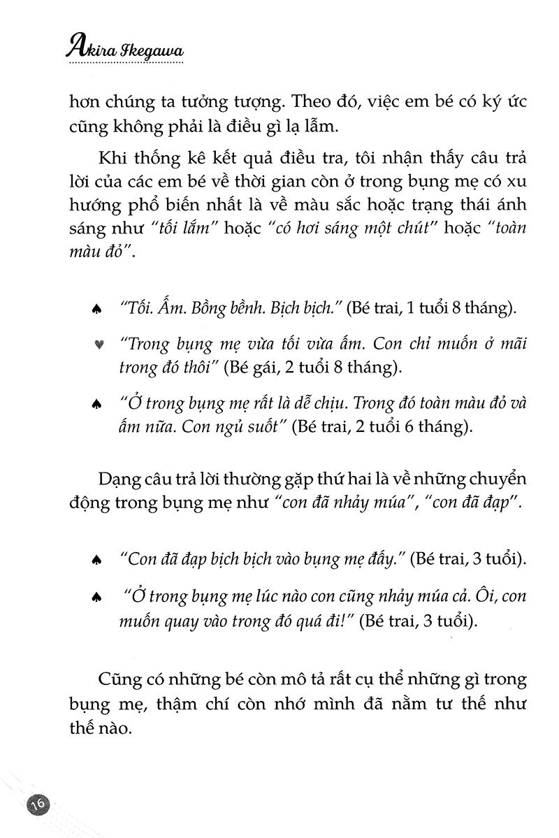 Có thể nói đây là 1 cuốn sách miêu tả sinh động và phương pháp nuôi dạy trẻ từ lúc còn trong bụng mẹ. Một sợi dây liên kết vô hình nào đó mà các bà mẹ hiện nay chưa biết về đứa con trong bụng m.ình. Hãy đặt câu hỏi bé là ai, tại sao bé lại chọn bố mẹ, tại sao không phải là một cặp đôi khác, giữa bố mẹ và bé có mối quan hệ như thế nào, làm sao để bé và mẹ có thể hiểu nhau, tại sao bé lại làm mọi thứ xung quanh ta thay đổi,…. Rất nhiều câu hỏi tại sao. Và cuốn sách này sẽ giải đáp các vấn đề đó và thậm chí mở ra một cái nhìn mới hơn về 1 sinh linh bé bỏng đang ở bên chúng ta.
