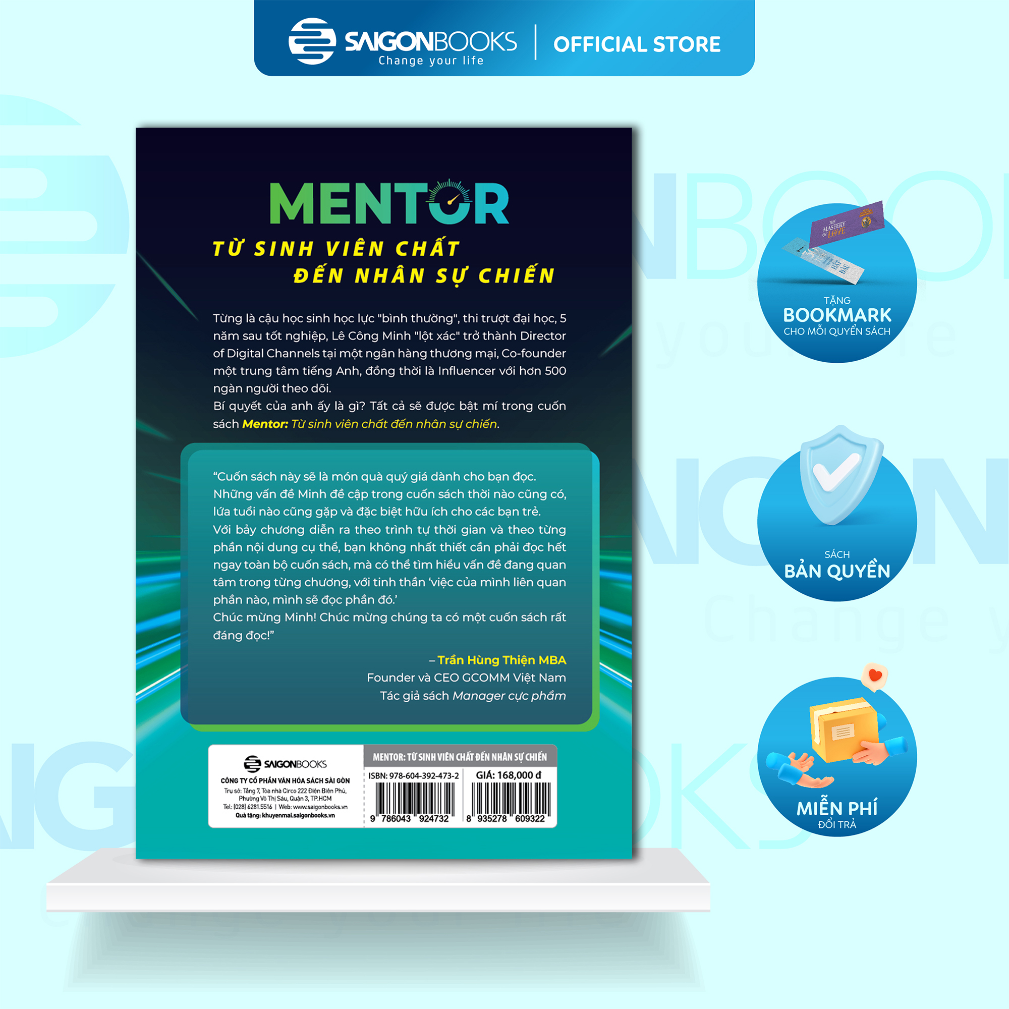 - Tác giả Lê Công Minh – ● Bạn đang lạc trôi giữa dòng đời xô bồ với hàng tá câu hỏi về sự nghiệp và không biết mình muốn gì, có thể làm được gì? ● Bạn là tân sinh viên bỡ ngỡ giữa giảng đường đại học, hay đang vật lộn với vô số mẫu CV (Curriculum vitae – lý lịch nghề nghiệp) và các vòng phỏng vấn căng não? ● Hay bạn hiện là “ma mới” chốn công sở nào đó và đang loay hoay đủ thứ chuyện từ ăn mặc, giao tiếp đến viết báo cáo, tạo dựng mối quan hệ...? Nếu bạn đang gật gù lia lịa với những câu hỏi trên, thì xin chúc mừng, bạn đã tìm đúng cuốn sách bạn cần rồi đấy! Quyển sách “MENTOR – Từ sinh viên chất đến nhân sự chiến” là “đứa con” đầy tâm huyết của tác giả Lê Công Minh - từ cậu thanh niên “fail toàn tập” khi thi trượt đại học, lẹt đẹt với bảng thành tích làng nhàng cho đến cho đến Giám đốc kênh Ngân hàng số, cựu nhân viên tại “Big 4 ngành kiểm toán thế giới” - Deloitte Digital và là nhà sáng lập của trung tâm tiếng Anh Mingology. Quyển sách không đơn thuần là những trang giấy đầy chữ, mà sẽ là một “vị mentor” – cố vấn và dẫn lối cho bạn trên chặng đường đầy cơ hội nhưng cũng lắm gian nan. Những bí kíp “gian lận” bạn sẽ tìm thấy thông qua 07 chương sách trong “MENTOR - Từ sinh viên chất đến nhân sự chiến”: ● Những lối tắt thông minh để “thiết kế” sự nghiệp xịn sò cho riêng mình, từ việc chọn trường, chọn nghề, tìm việc... ● “Đột nhập” thế giới công sở: Bí kíp viết CV “thần sầu”, “cân não” trong phòng phỏng vấn, và “tung chiêu” đàm phán lương để “hét giá” thật cao. ● “Thăng hạng thần tốc”: Hướng dẫn chi tiết về cách “tung hoành” chốn công sở, từ việc ăn mặc, giao tiếp, đến cách viết email, báo cáo...; ● “Tuyệt chiêu” để được sếp và đồng nghiệp “cưng như trứng mỏng”, thăng tiến nhanh chóng và nhận được mức lương xứng đáng. ● Nghệ thuật “ra đi” đúng lúc: Và cả cách “chia tay” êm đẹp để lại ấn tượng “ngọt ngào” và giữ được những mối quan hệ quý giá. BỘ 04 QUÀ TẶNG KÈM