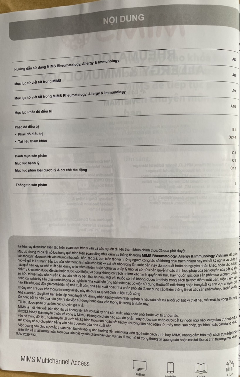 Hướng dẫn sử dụng Mims Rheumatology, Allergy & Immunology