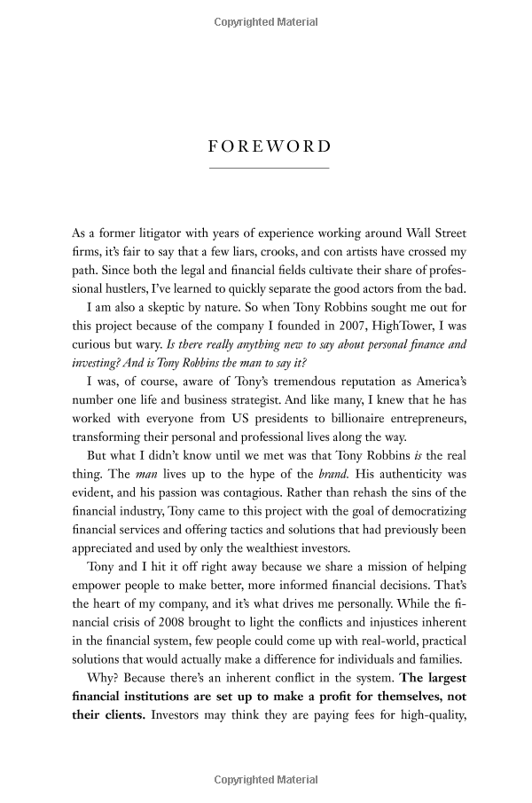 "Tony Robbins needs no introduction. He is committed to helping make life better for every investor. Every investor will find this book extremely interesting and illuminating" - Carl Icahn, billionaire and investor. "Tony Robbins is a