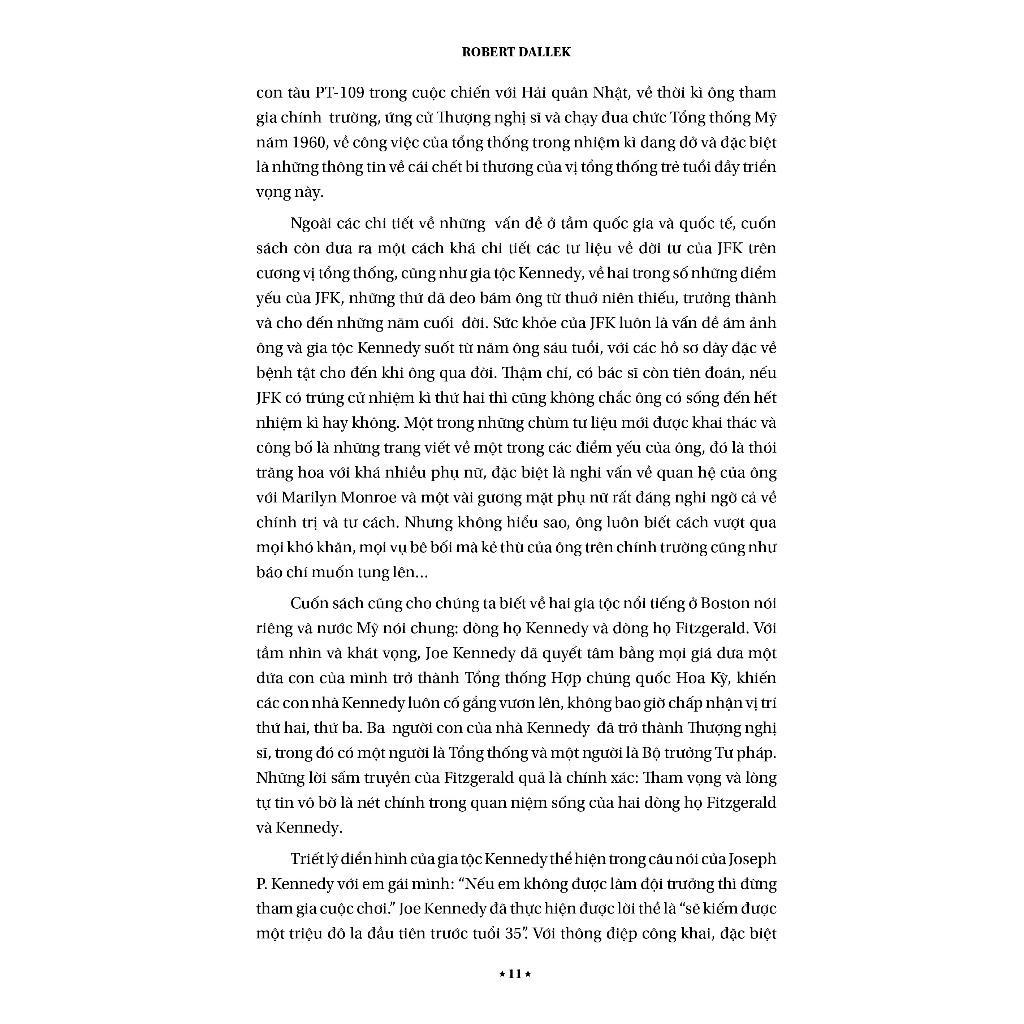 Cuốn sách Một cuộc đời dang dở: John F. Kennedy, 1917-1963 mô tả bức chân dung chính xác về Tổng thống John Fitzgerald Kennedy. Tác giả Robert Dallek, một trong những nhà sử học đáng kính nhất ở Mỹ, mô tả Kennedy là “một con người với đầy đủ những đức tính và những thiếu sót khiến ông dường như vừa phi thường lại vừa bình thường - một con người có trí tuệ khác thường, có mục đích, kỉ luật và óc phán đoán tốt, đồng thời vẫn có nhiều vấn đề về sức khỏe thể chất và cảm xúc”.