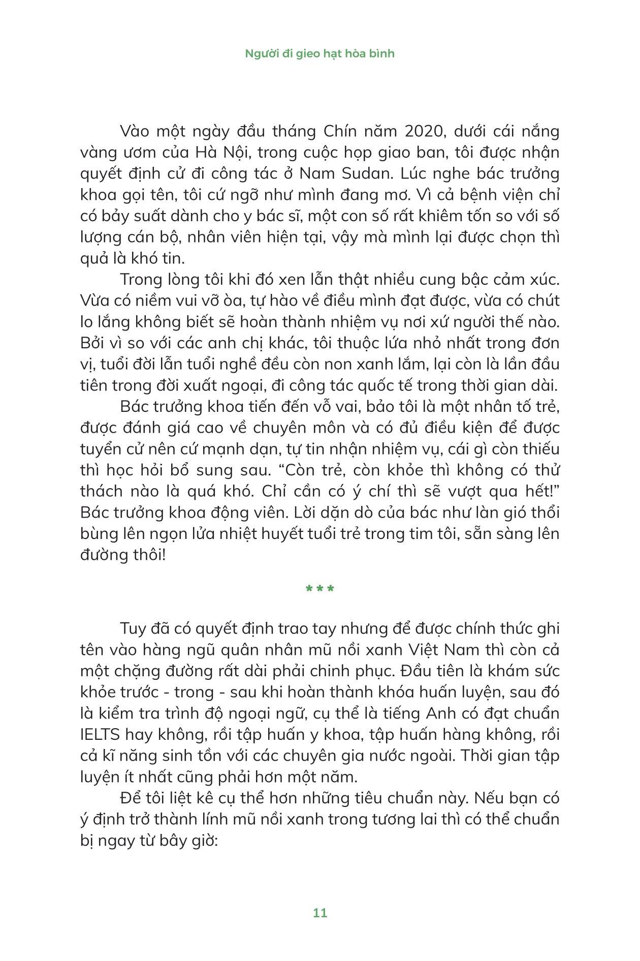 Mua tại TiktokMũ Nồi Xanh Việt Nam - Người Đi Gieo Hạt Hòa Bình Hình ảnh người lính mũ nồi xanh Việt Nam thực hiện nhiệm vụ quốc tế trở nên quen thuộc trong những năm qua. Thế nhưng vẫn còn đó nhiều câu hỏi: Đất nước những người lính đến làm nhiệm vụ ở nơi đâu, sao tên nghe lạ quá? Cuộc sống người dân nơi đó ra sao? Những người lính thực hiện nhiệm vụ gìn giữ hoà bình như thế nào? Mũ nồi xanh Việt Nam - Người đi gieo hạt hòa bình là hành trình của một người trong cuộc. Cùng với người lính trẻ Nguyễn Sỹ Công, bạn chuẩn bị hành trang lên đường đến đất nước Nam Sudan, thực hiện nhiệm vụ của một người lính gìn giữ hòa bình Liên Hợp Quốc. Và chính ở nơi đây, bạn khám phá những điều tuyệt vời nhất khi con người gắn bó với nhau bằng tình yêu thương, cũng như ý nghĩa sâu sắc của từ “hòa bình”.