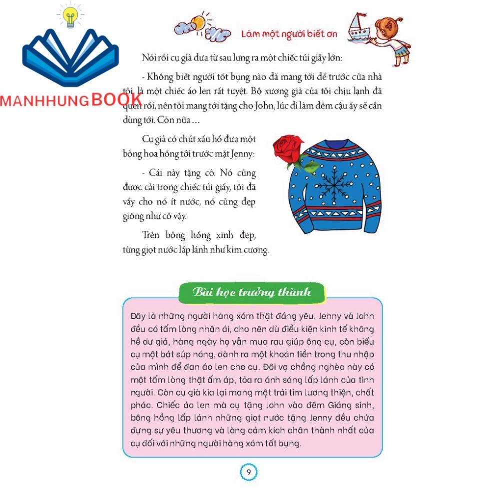 Bộ sách 10 cuốn gồm những câu chuyện thú vị , sinh động , dễ đọc dễ hiểu trong đời sống , mang đến cho trẻ cách nhìn và tư duy đa diện về : học tập , sự tự tin , lòng trung thực , lòng biết ơn , ... từ đó bồi dưỡng nên những đức tính tốt đẹp , tiếp thu năng lượng tích cực . Ngôn từ trong sách ấm áp , gần gũi , hình ảnh tươi sáng phù hợp với lứa tuổi từ 6 – 12 tuổi , góp phần vun đắp trí tuệ và cảm xúc cho trẻ , biến những lý lẽ thành niềm tin .