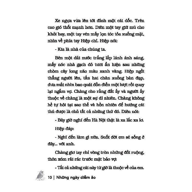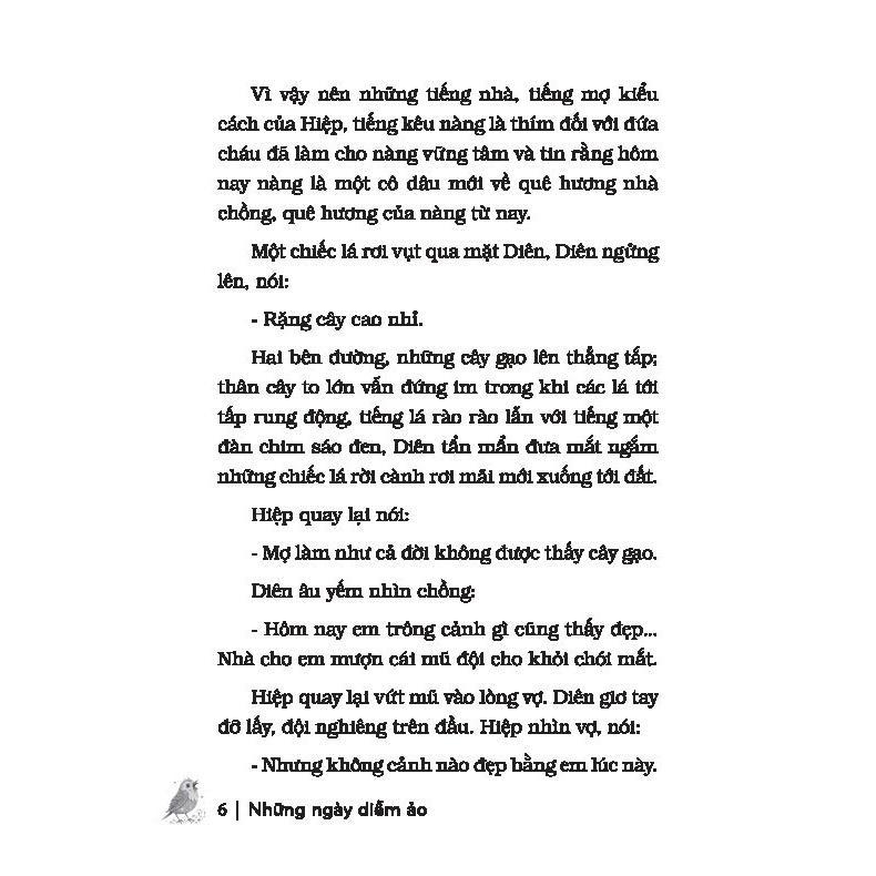 Vì vậy nên những tiếng nhà, tiếng mợ kiểu cách của Hiệp, tiếng kêu nàng là thím đối với đứa cháu đã làm cho nàng vững tâm và tin rằng hôm nay nàng là một cô dâu mới về quê hương nhà chồng, quê hương của nàng từ nay"