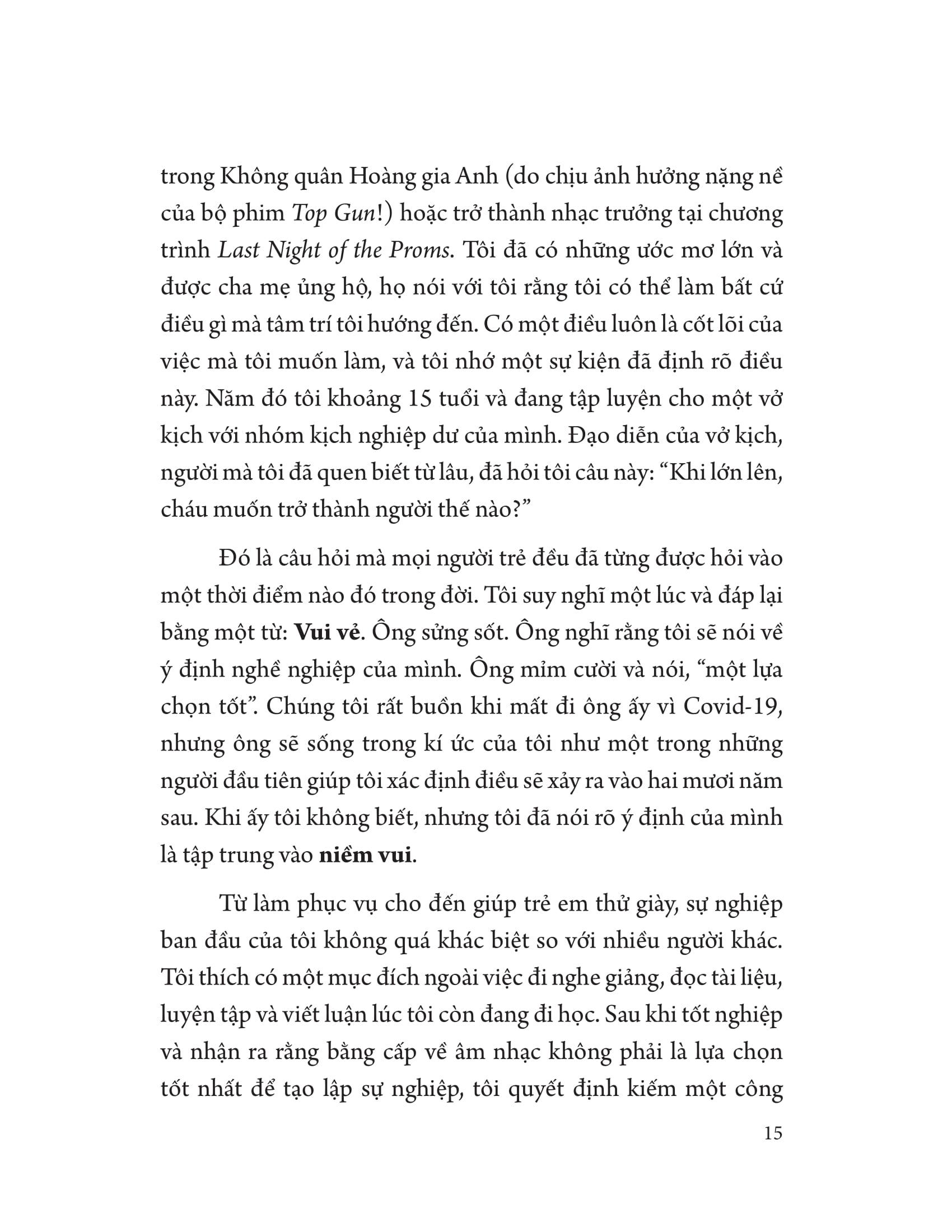 - Làm sao để sử dụng bộ công cụ này hiệu quả và phù hợp đối với bản thân? "Niềm vui công việc" được chia thành 4 phần, bao gồm: Phần 1: Giới thiệu về Niềm vui công việc và Nỗi buồn công việc Phần 2: Các yếu tố Niềm vui Công việc nội tại Phần 3: Các yếu tố Niềm vui Công việc bên ngoài Phần 4: Biến Niềm vui Công việc thành hiện thực Với bộ công cụ hữu ích này, bạn có thể sử dụng theo hai cách: Bạn có thể đọc nó từ đầu đến cuối, bắt đầu với những kiến thức nền tảng và từng bước tìm hiểu những lời khuyên thiết thực - một trải nghiệm đắm chìm trọn vẹn! Bạn cũng có thể tập trung vào các phần phù hợp với nhu cầu của m.ình ngay lúc này, từ đó áp dụng vào thực tế một cách dễ dàng hơn. Với "Niềm vui công việc" - một bộ sưu tập các công cụ thực tế, được thiết kế để đưa người đọc vào một chuyến thám hiểm nhằm tìm kiếm và duy trì nhiều niềm vui hơn trong đời sống công việc của chính m.ình, bạn chắc chắn sẽ tìm thấy lại được chính m.ình, tạm biệt tình trạng "zombie" công sở, thắp lại ngọn lửa say mê và giúp cho tinh thần phấn chấn, năng động trở lại!