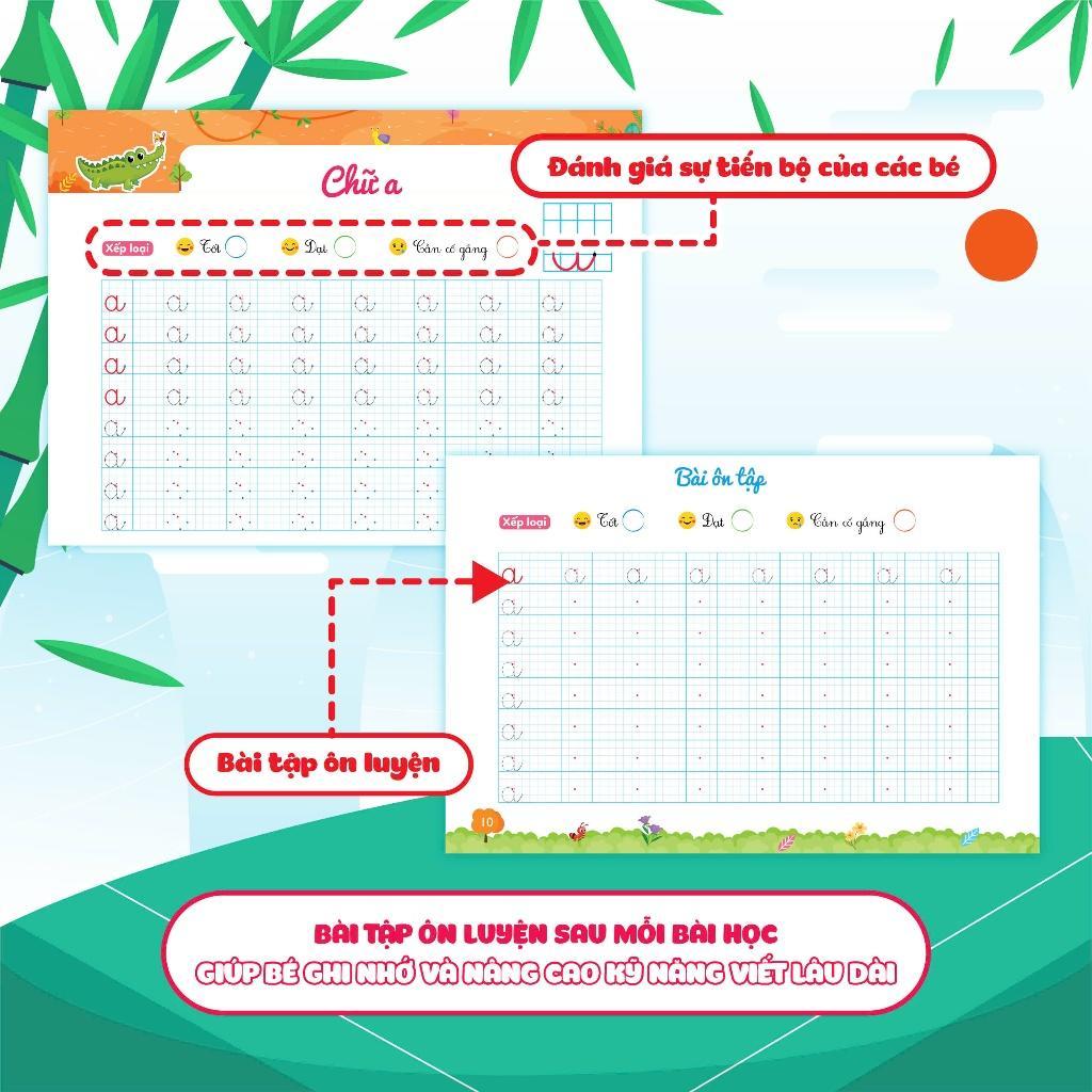 Sau mỗi bài học là bài tập ôn tập giúp bé ôn lại kiến thức, ghi nhớ lâu và sâu hơn.