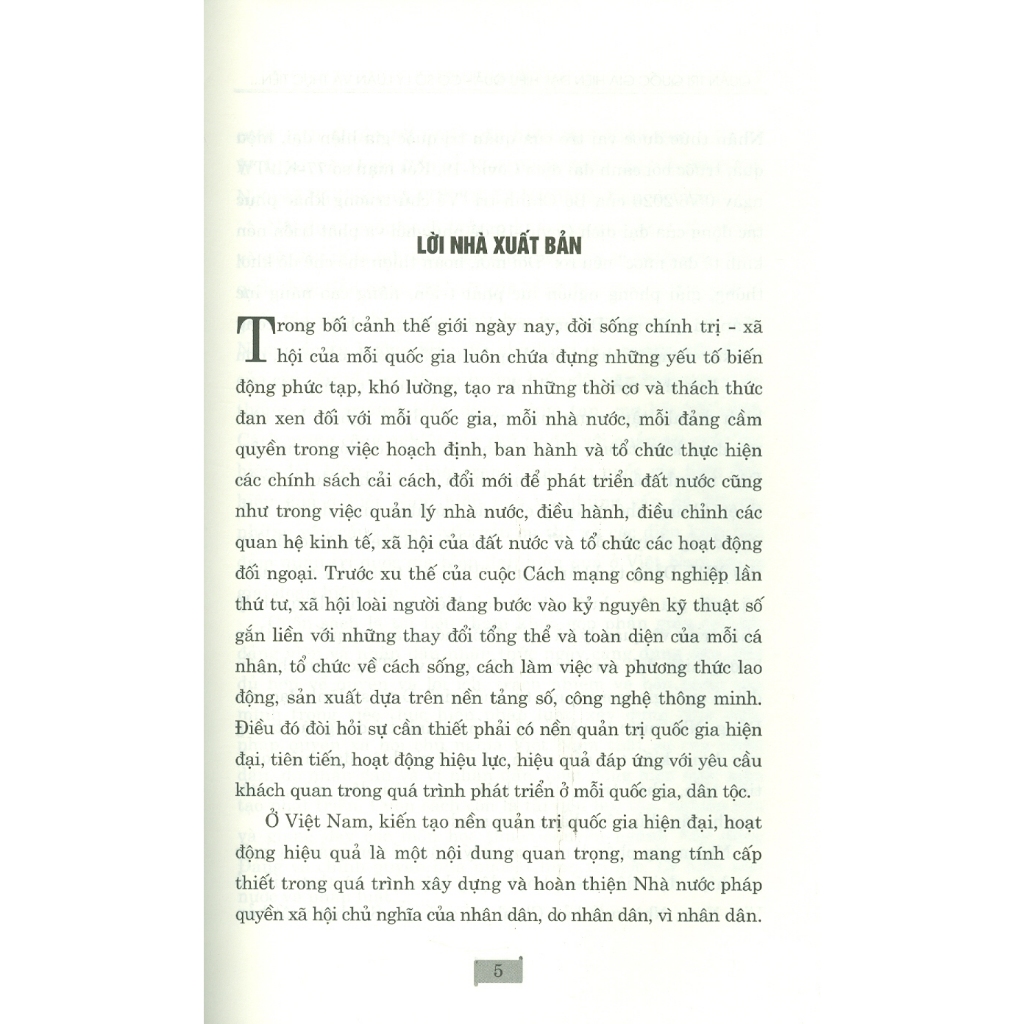 "Xây dựng nền quản trị quốc gia hiện đại, hoạt động hiệu lực, hiệu quả là yêu cầu, đòi hỏi tất yếu khách quan đối với mỗi quốc gia trong quá trình phát triển. Ở Việt Nam, kiến tạo nền quản trị quốc gia là một nội dung quan trọng, mang tính cấp thiết trong quá trình xây dựng và hoàn thiện Nhà nước pháp quyền xã hội chủ nghĩa của nhân dân, do nhân dân, vì nhân dân.