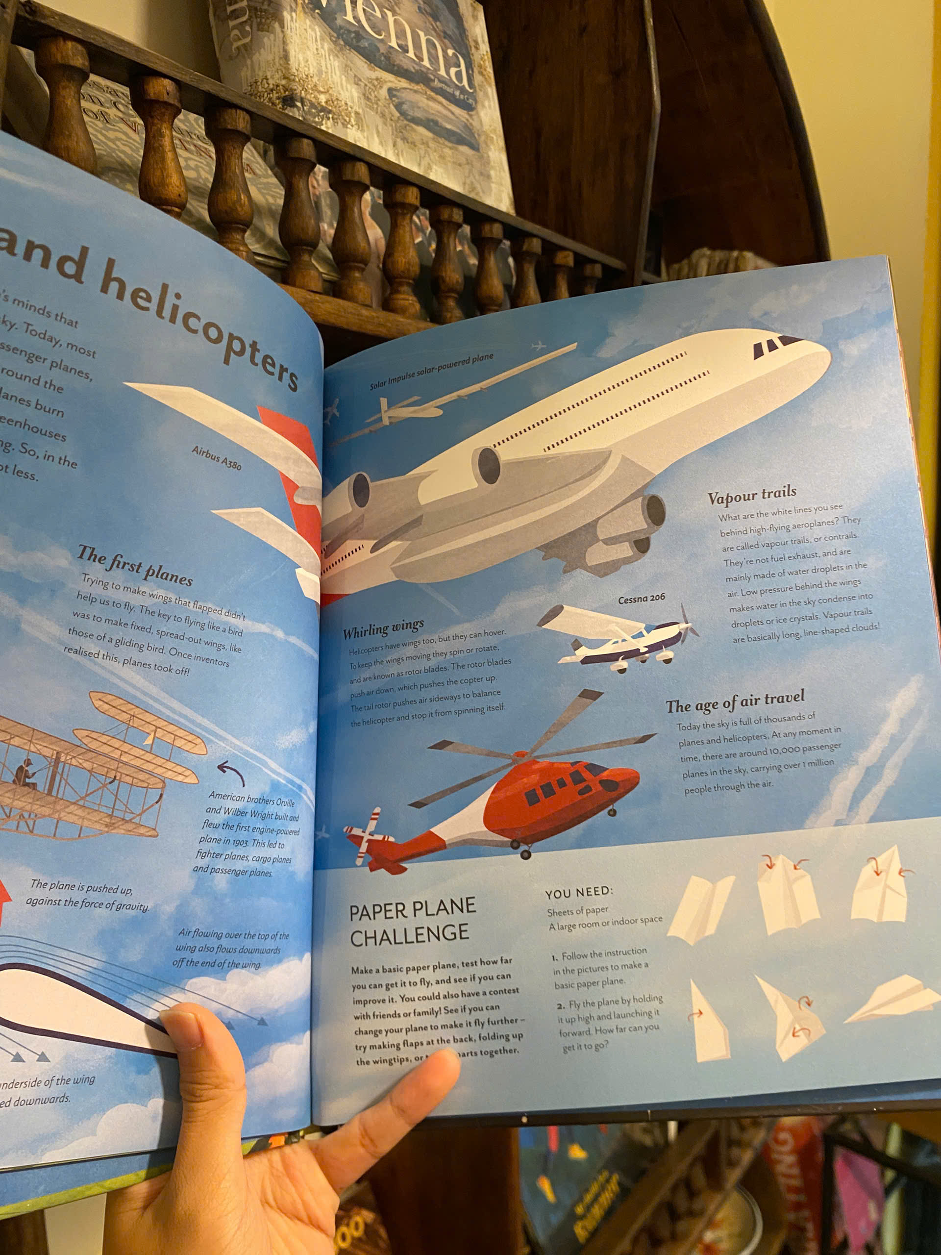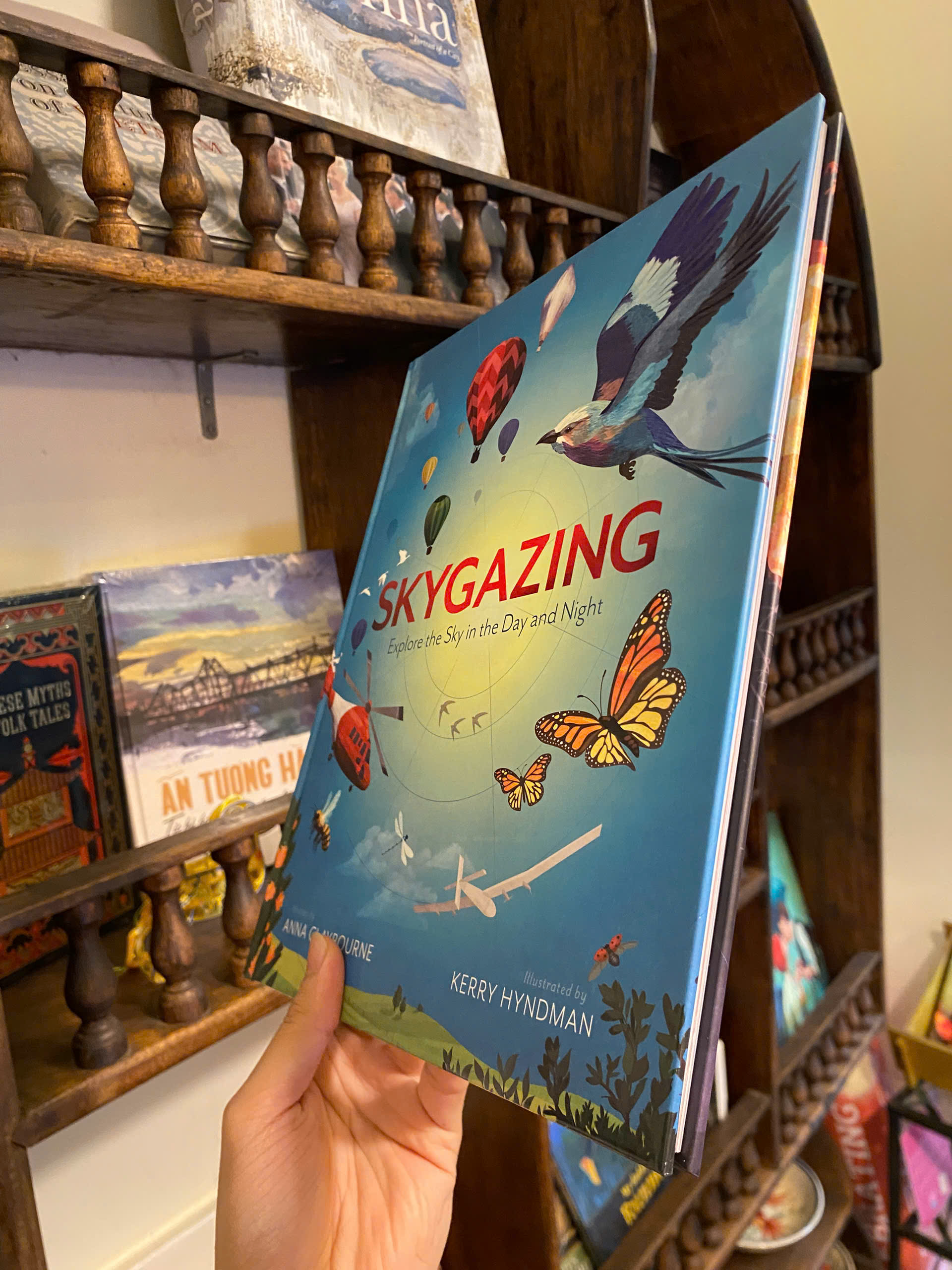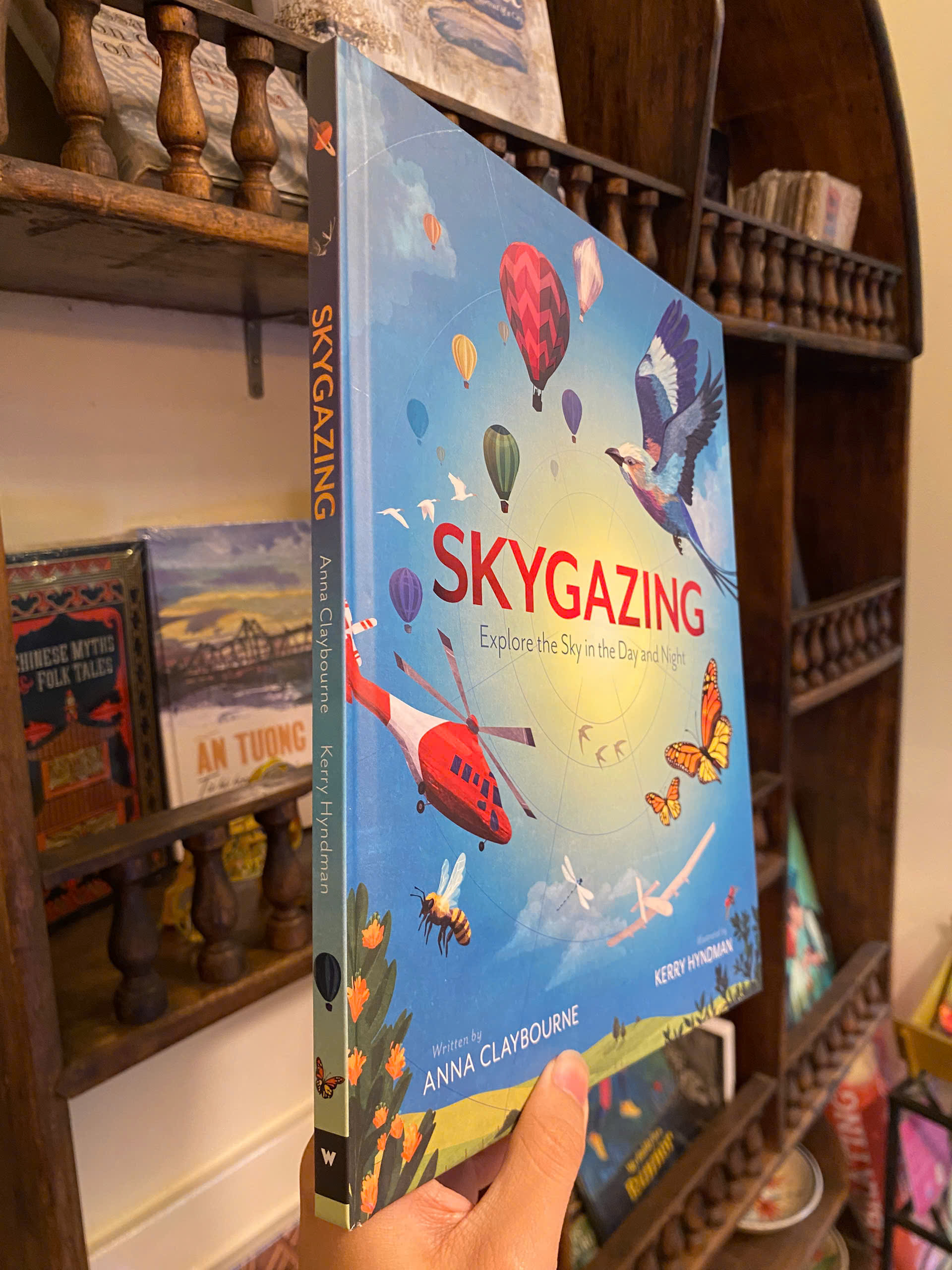 Bạn thấy gì khi nhìn lên bầu trời? Bầu trời trông có vẻ rộng lớn, trống rỗng, nhưng thực ra nó bận rộn hơn bạn nghĩ. Từ mây trời, sao trời, chim chóc, máy bay và muôn vàn thứ khác – cả một bầu trời rộng lớn để khám phá. Skygazing là một cuốn sách hai mặt chứa đầy những thông tin liên môn đáng kinh ngạc, các hoạt động thú vị và những hình ảnh minh họa tuyệt đẹp để thưởng thức. Khám phá lý do tại sao bầu trời xanh, những thí nghiệm đầu tiên trên máy bay và cách trực thăng bay trên không, trước khi lật sách để tìm hiểu tất cả về bầu trời đêm. Tìm hiểu cách đọc các vì sao, phát hiện các sinh vật bay về đêm và chiêm ngưỡng màu sắc của cực quang.