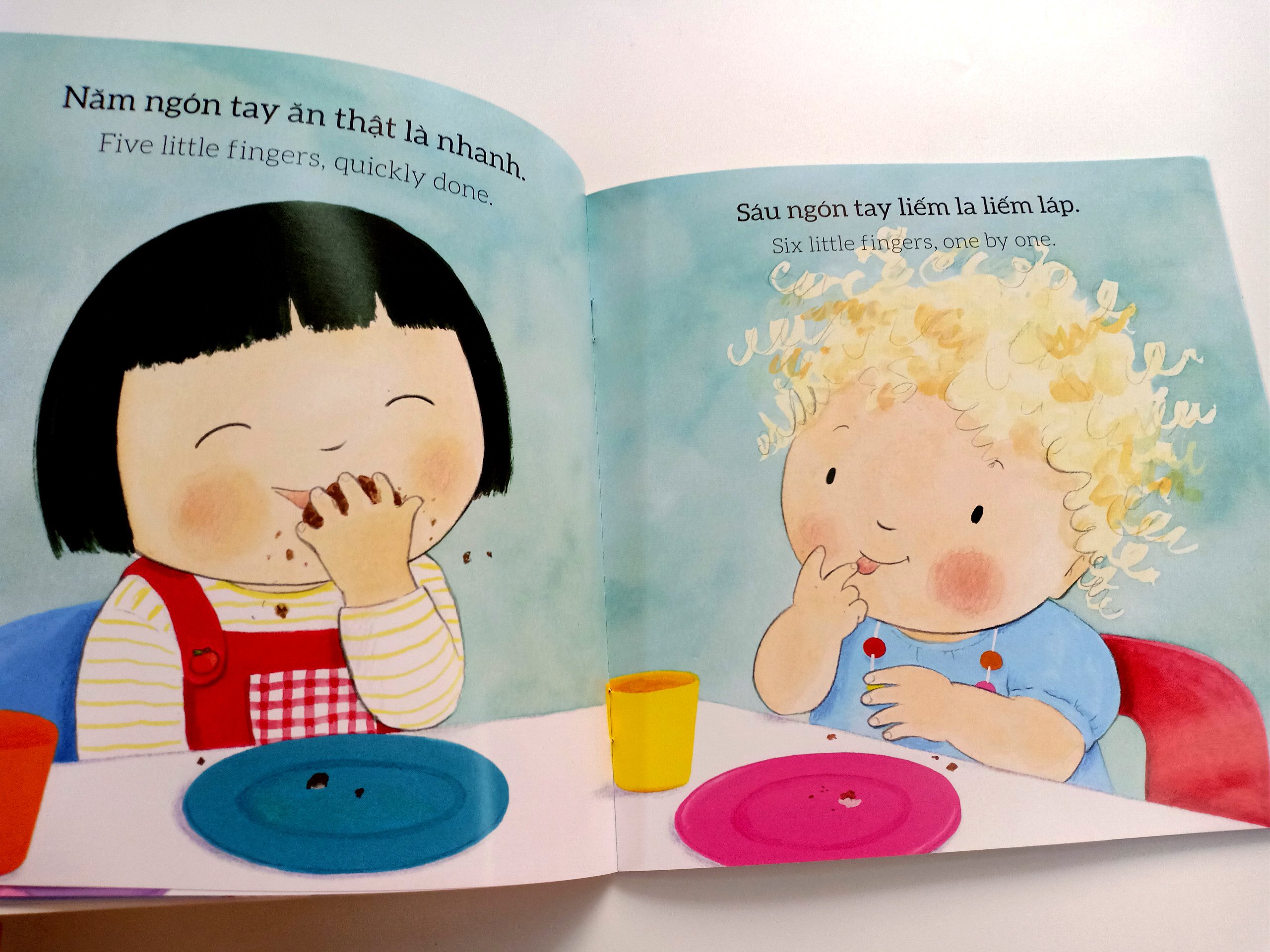 Đây là hai cuốn sách song ngữ cực kỳ dễ thương với những bức tranh minh họa đầy màu sắc sẽ giúp bé nhận biết các ngón tay, bàn tay, ngón chân, bàn chân và học đếm số theo một cách vui vẻ, tự nhiên nhất.