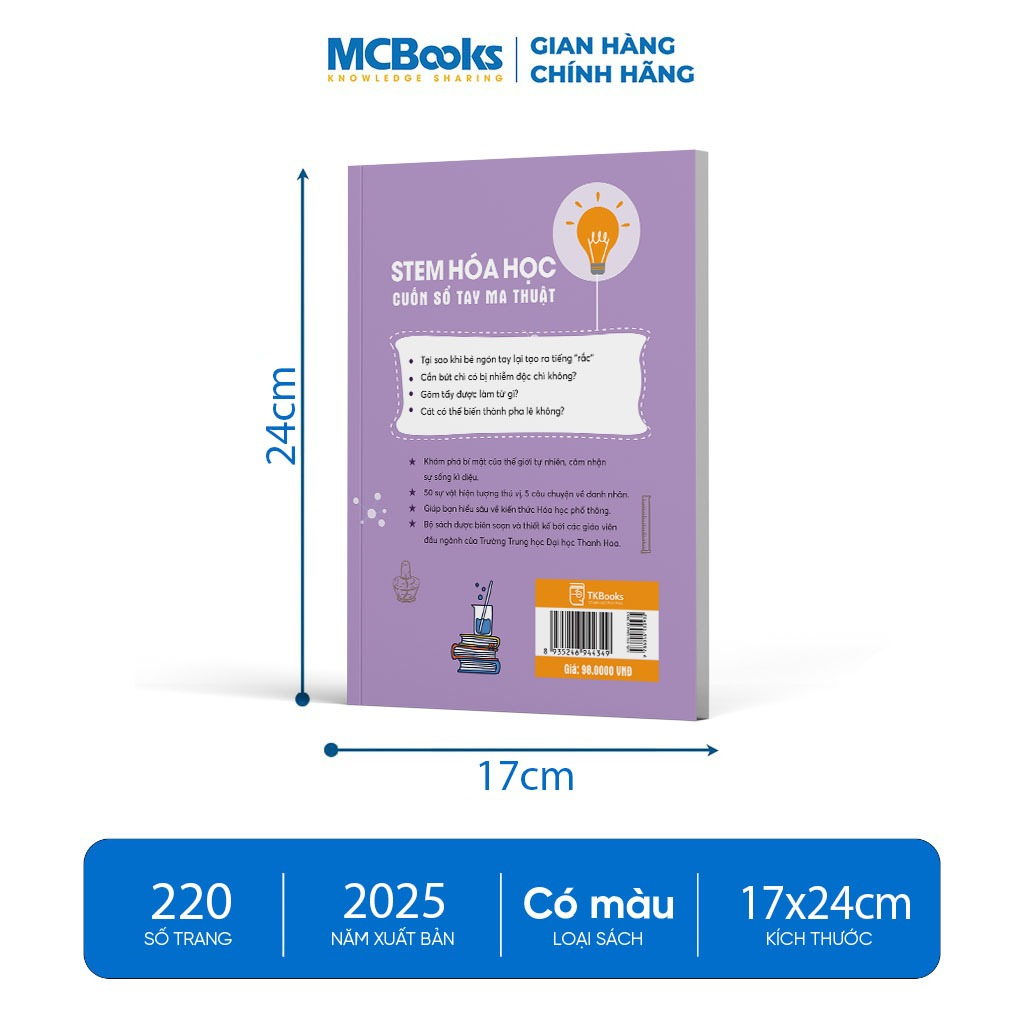 STEM HÓA HỌC – Cuốn Sổ Tay Ma Thuật là một cuốn sách sinh động giúp người đọc khám phá thế giới hóa học theo cách trực quan, thú vị và ứng dụng thực tiễn. Thông qua các thí nghiệm, trò chơi và phương pháp học theo mô hình STEM, sách giúp biến những khái niệm khô khan thành trải nghiệm đầy hấp dẫn, khơi dậy niềm đam mê khoa học và tư duy sáng tạo. Cuốn sách là kết tinh của tâm huyết đội ngũ giáo viên Trường Trung học Đại Học Thanh Hoa – một trong những ngôi trường danh giá tại Bắc Kinh. Từ những câu chuyện thú vị trên lớp học đến những kiến thức hóa thực tế đầy thách thức, cuốn sách này sẽ khơi dậy niềm đam mê hóa học trong bạn.