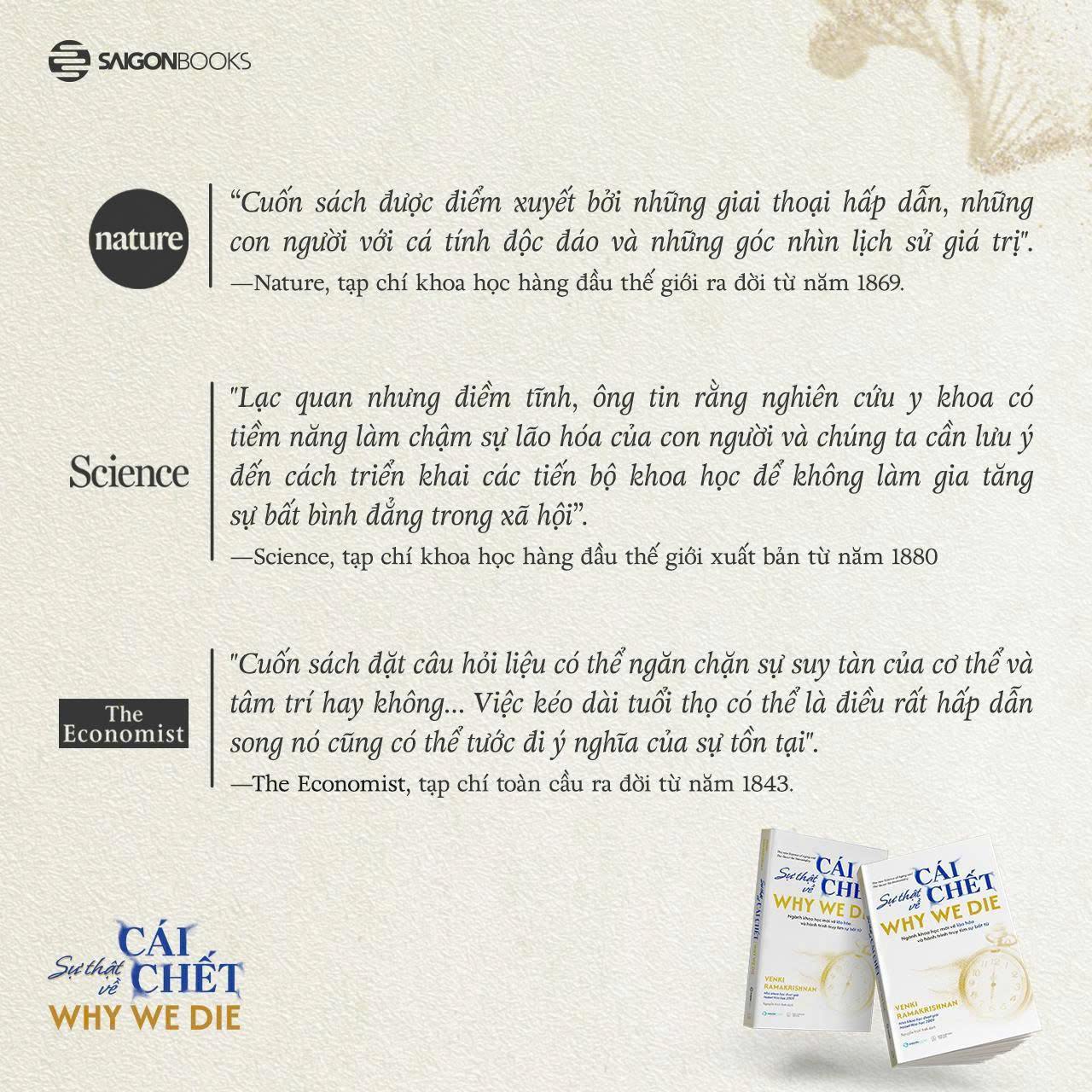 Trong “Why We Die – Sự thật về cái chết”, nhà sinh học đoạt giải Nobel Venki Ramakrishnan không chỉ trình bày những khám phá mới nhất về sinh học lão hóa, mà còn mở ra một cuộc trò chuyện sâu sắc về giới hạn của tuổi thọ, ở cả cấp độ tế bào lẫn tư duy con người.