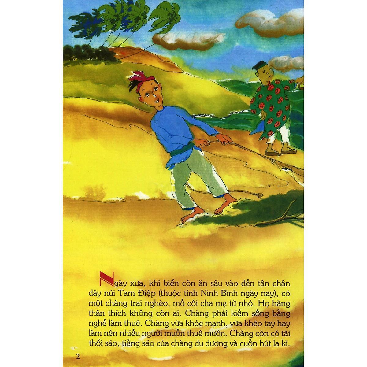 Chàng mồ côi nhờ tiếng sáo du dương của mình đã khiến nàng tiên út nhà Trời cảm mến. Thế rồi họ nên duyên chồng vợ. Nhưng mối duyên giữa kẻ trần người tiên gặp nhiều trắc trở gian nan. Các em cùng đọc câu chuyện cảm động về tình cảm gia đình, đồng thời biết thêm về sự tích núi Vàng ở đất Tam Điệp - Ninh Bình ngày nay.