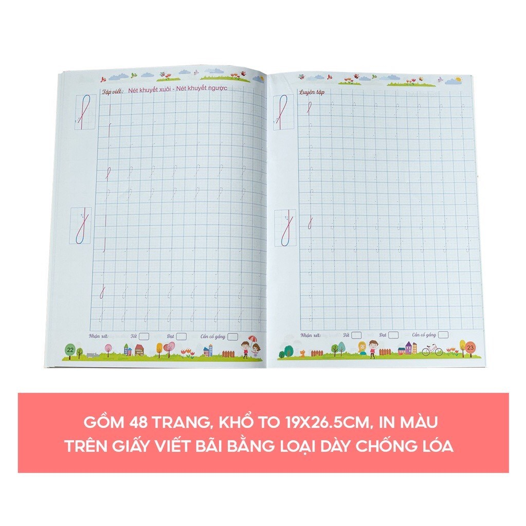 - Các bé chuẩn bị vào lớp 1 đang trong quá trình tập viết chữ hoặc viết chính tả. Thời gian đầu, bố mẹ thường mua cho các em những vở có sẵn mẫu chữ, kiểu chữ. Vở luyện viết chữ đẹp cho học sinh có sẵn mẫu chữ sẽ tạo thói quen bắt chước cho các bé khi mới tập viết.