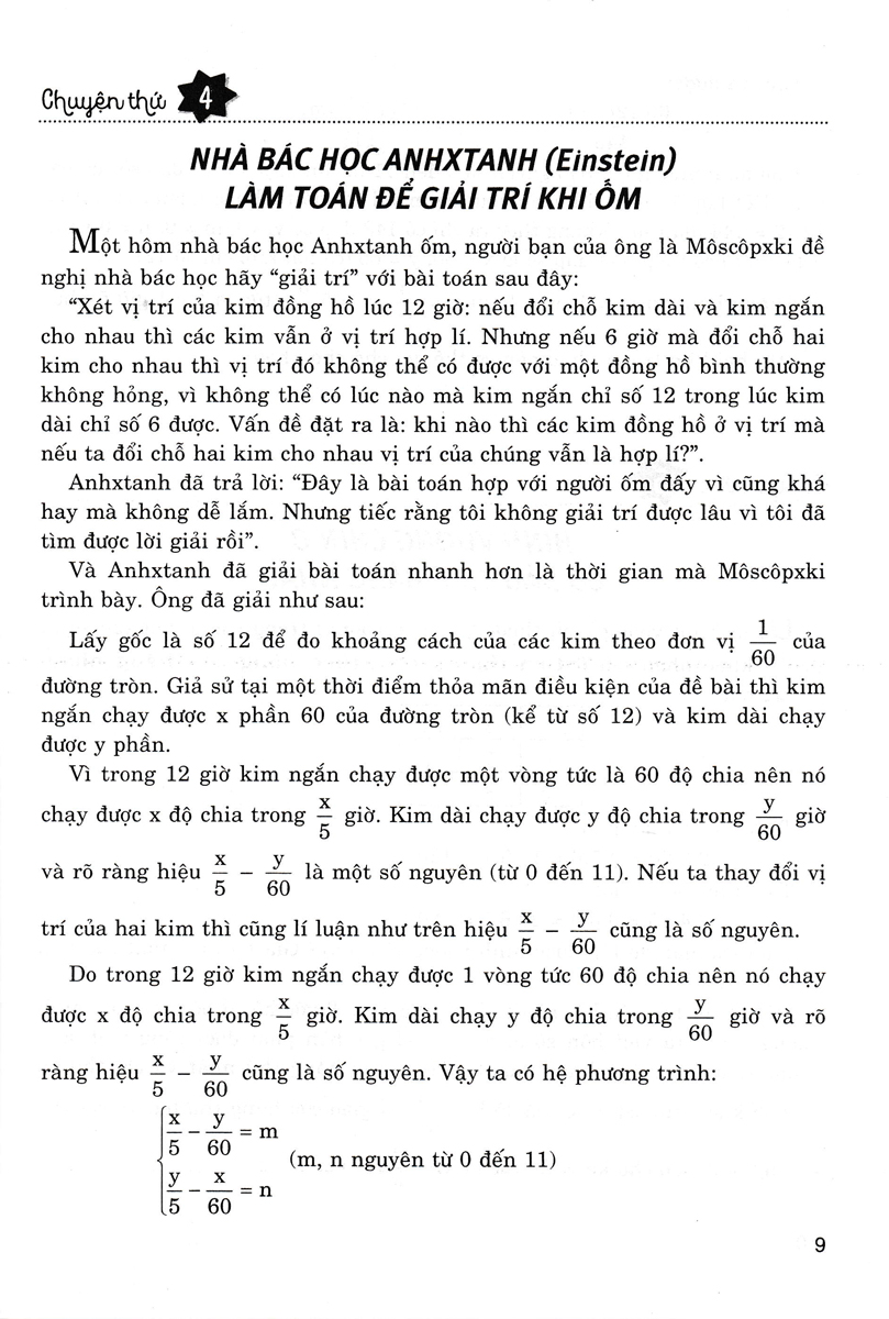- Giải trí sau những giờ phút làm việc, học tập. Cuốn sách này gồm hai tập, mỗi tập gồm 101 chuyện lí thú về toán: tập một dành cho các bạn có trình độ THCS, tập hai dành cho các bạn có trình độ THPT. Với mỗi chuyện trong sách, mong các bạn suy nghĩ, làm thử, giải đáp thử trước khi đọc tiếp. Hi vọng cuốn sách này góp phần tạo cho các bạn lòng say mê toán học, môn thể dục của trí tuệ.