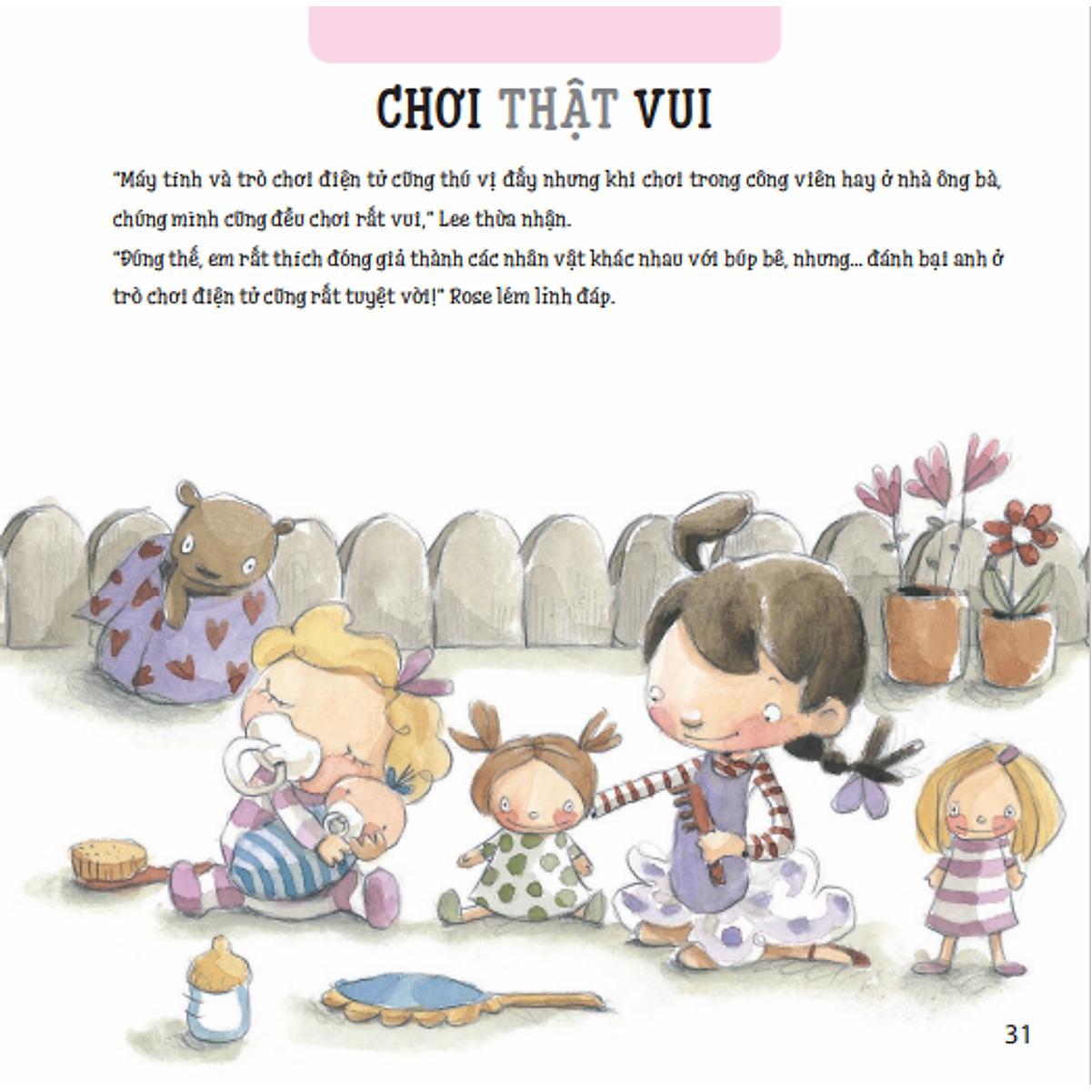 Xoay quanh nhân vật trung tâm là các bạn nhỏ đáng yêu: Lee, Rose, Sam, Lucy, tác giả đưa ra những biện pháp dễ thực hiện, hiệu quả nhằm giúp trẻ chinh phục các thử thách đầu đời. Theo quan điểm của tác giả, không chỉ có các bậc cha mẹ mới có thể hướng dẫn, hỗ trợ con bỏ ti giả, bỏ bỉm, hình thành thói quen giữ vệ sinh mà chính những bạn nhỏ - trước hết là anh chị em trong gia đình - cũng hoàn toàn có khả năng giúp đỡ lẫn nhau, “làm gương” cho nhau. Việc cô chị chỉ hơn cậu em trai 2-3 tuổi hào hứng khoe: “Chị lớn rồi mà” hay lời khen tặng của anh trai khi thấy em đi ngủ không cầm ti giả sẽ giúp em có động lực phấn đấu hơn. Trên thực tế, những hành động nhỏ lại tác động đáng kinh ngạc đến trẻ.