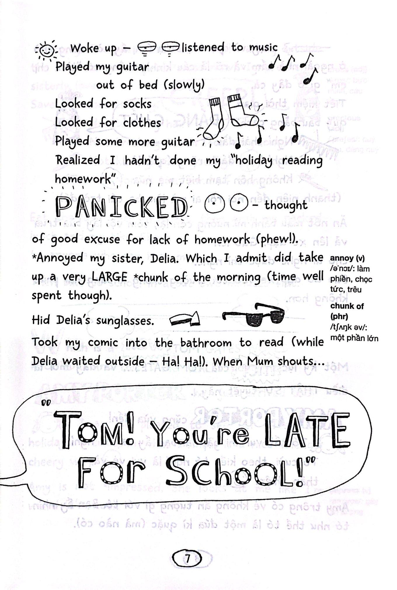 Truyện được trình bày dưới dạng nhật ký minh họa tay, kể lại những chuyện “dở khóc dở cười” của Tom ở trường học, trong gia đình và nhóm bạn thân – với giọng kể cực kỳ “teen”, gần gũi và duyên dáng.