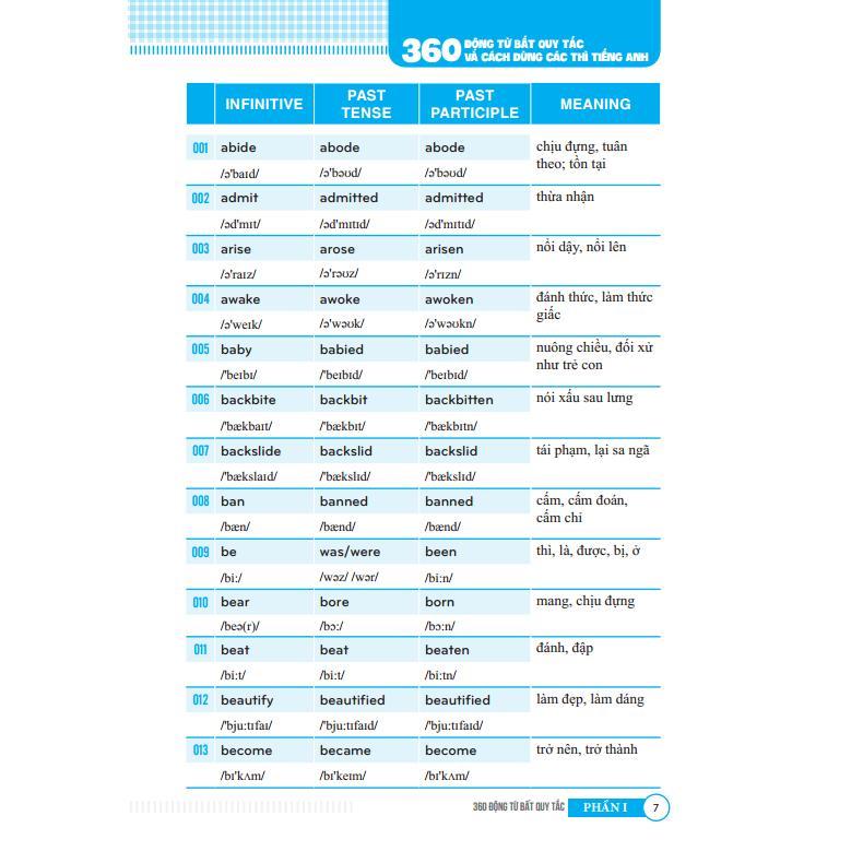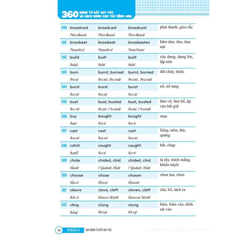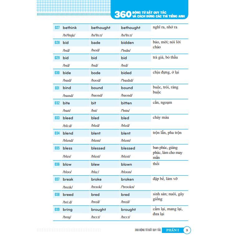 Cùng tham khảo cuốn sách để nắm vững 360 động từ bất quy tắc trong tiếng Anh nhé.