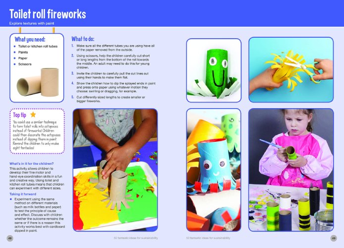 Teach children to reduce, reuse, recycle, repair and be respectful with 50 fun activities for encouraging environmental sustainability. From making planters and bird feeders to creating natural paints or even bringing broken crayons back to life, these original ideas encourage children and practitioners to see the potential for creativity and fun using and reusing everyday, easy-to-source items, some of which might have otherwise gone to waste.
