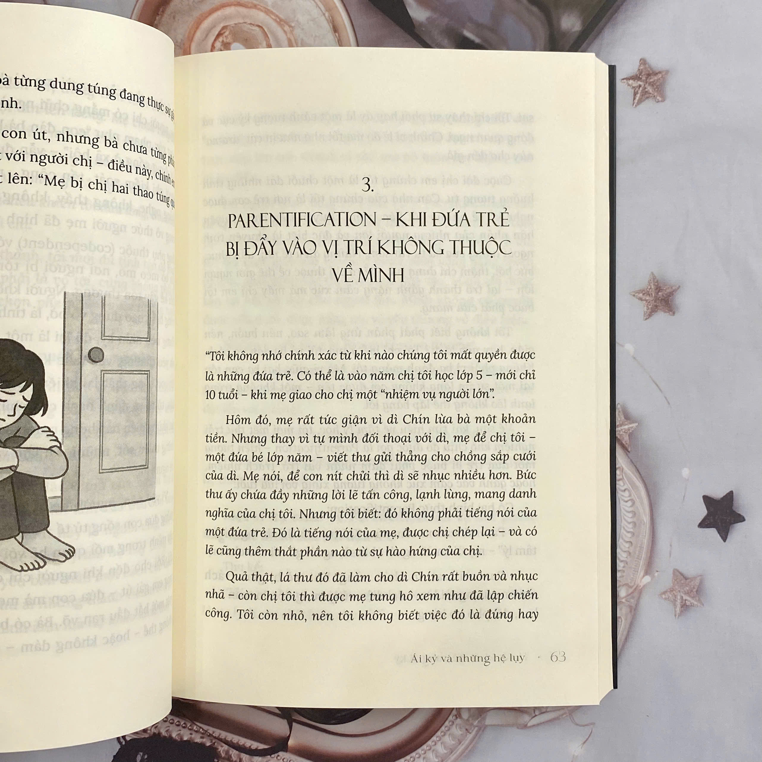 THÔNG TIN XUẤT BẢN Tên tác phẩm: Thoát khỏi mê cung ái kỷ Tên tác giả: Thư An Thương hiệu: Mochibooks Khổ sách: 14.5 x 20.5 cm Số trang: 308 Nhà xuất bản: Thế Giới Giá: 199.000đ Mã ISBN: 978-632-604-515-4 Sách in bìa mềm, giấy Bãi Bằng Vàng Giới thiệu nội dung: Có những nỗi đau không để lại vết bầm trên da thịt, nhưng lại khắc sâu trong tâm hồn. Có những “gia đình” mà tình thân trở thành xiềng xích, nơi yêu thương bị bóp méo thành kiểm soát, nơi tiếng nói của nạn nhân bị dìm sâu trong những lớp mặt nạ đạo đức. Cuốn sách “Thoát khỏi mê cung ái kỷ” của tác giả An Thư là tiếng gọi thức tỉnh từ chính bóng tối đó. Với trải nghiệm cá nhân sâu sắc và kiến thức tâm lý học vững chắc, tác giả Thư An đã dũng cảm vén tấm màn che phủ những hình thức bạo hành tinh thần tinh vi, lặng lẽ, nhưng tàn khốc không kém bất kỳ vết thương nào - mang tên Ái kỷ.  Cuốn sách mở đầu bằng câu hỏi: “Bạn có đang bị thao túng mà không hề nhận ra?” Từ đó, tác giả dẫn người đọc đi sâu vào cấu trúc của những gia đình ái kỷ, nơi các thành viên sống trong vai diễn được sắp đặt: người kiểm soát, người im lặng, người phản kháng, người bị gán tội. Với từng lát cắt tinh tế và chân thực, sách giúp người đọc nhận diện các hành vi thao túng, gaslighting (đánh tráo nhận thức), sự im lặng đồng lõa (Flying Monkey), và những hệ quả tàn khốc của bạo hành tinh thần xuyên thế hệ. Các chương trong sách không đi theo trình tự thời gian, mà được chia theo chủ đề tâm lý học và hành vi, giúp người đọc dễ dàng nhận ra chính mình (hoặc người thân) trong những tình huống tưởng chừng “bình thường” của đời sống gia đình: Một người mẹ thao túng bằng cảm giác tội lỗi. Một người chị luôn cho mình đúng, gieo rắc sự chia rẽ bằng lời nói ngọt ngào. Một người cha im lặng, đứng ngoài mọi tổn thương nhưng vô hình trung tiếp tay cho cái ác. Và những nạn nhân của hệ thống thao túng đầy tinh vi. Bằng câu từ chân thật và đầy cảm xúc, cuốn sách dẫn dắt người đọc đi qua các chương đầy ám ảnh, cho đến hành trình đau đớn để tự mình phá vỡ “vết cắt xuyên thế hệ”. Đó là hành trình trở về với chính mình, với cảm xúc thật, giá trị thật và giấc mơ được sống đúng là mình. Nếu bạn từng cảm thấy bị tổn thương mà không hiểu vì sao, từng bị phủ nhận cảm xúc, từng sống trong hoang mang giữa đúng – sai, hoặc từng nghi ngờ chính mình trong một mối quan hệ tưởng là thân thiết, thì cuốn sách này dành cho bạn. Vì sự thật là: bạn không điên. Bạn chỉ đang bị thao túng. Và bạn xứng đáng được tự do.
