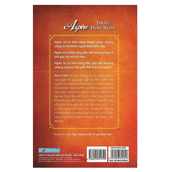 Thuật Dụng Ngôn Ngôn từ có khả năng thuyết phục nhưng cũng có thể khiến người khác khó chịu - Ngôn từ có khả năng dẫn dắt nhưng cũng có thể gây cản trở cho bạn - Ngôn từ có khả năng hàn gắn vết thương nhưng cũng có thể giết chết một con người… Kevin Hall đã khám phá được sức mạnh nội tại của ngôn từ sau cuộc gặp gỡ định mệnh với người chủ tiệm vải thông thái tại thành Vienna. Khi số phận đưa ông đến với Arthur, nhà từ vựng học xuất chúng sống tại khu hưu trí, Hall đã bắt tay vào thực hiện một dự án – một công trình đã thay đổi cuộc đời ông, và từ đó làm thay đổi cuộc sống của hàng ngàn độc giả. Với 11 từ có sức mạnh bí mật trong cuốn sách này – những từ ngữ mà một khi được sử dụng đúng cách, nó có thể thắp sáng con đường thành công lâu dài trong cuộc đời bạn. “Thuật Dụng Ngôn”, tựa cũ “Sức mạnh bí ẩn của 11 câu thần chú” được chia thành 11 chương với 11 từ cốt lõi, và bạn có thể đọc đi đọc lại nhiều lần để trau dồi quá trình thay đổi hành vi lâu dài. Mô hình và bố cục của các chương phản ánh nền tảng kiến thức và kinh nghiệm của tác giả trong quá trình đào tạo và phát triển con người suốt hai mươi lăm năm qua. Năm chương đầu sẽ bàn về quá trình phát triển cá nhân – cách sử dụng sức mạnh bí ẩn của ngôn từ để tìm thấy con đường và mục đích của riêng bạn. Chương giữa có vai trò độc lập bởi đó là chủ đề trọng tâm của toàn bộ cuốn sách. Từ cốt lõi của nó là  “humility”, tức sự khiêm tốn, một đặc điểm có sức ảnh hưởng mạnh mẽ mà tôi xem như “khởi nguồn của mọi đức hạnh” vì nó là yếu tố mấu chốt cho quá trình phát triển và hoàn thiện không ngừng. Năm chương cuối bàn về việc dẫn dắt người khác, bao gồm ngôn ngữ về vai trò lãnh đạo: nó không nói về bạn, nó nói về người khác. Giống như sự vận hành của bánh xe, các chương này phản ánh phạm vi ảnh hưởng của bạn được mở rộng từ trục bên trong, sau đó lan rộng ra để chi phối sự chuyển động của toàn bộ bánh xe. Chương cuối cùng – “Integrity”  – có nghĩa là toàn vẹn hoặc hoàn chỉnh – sẽ hoàn thiện toàn bộ bánh xe phát triển này. Bạn có thể dễ dàng đọc hết cuốn sách này chỉ trong một lần. Bạn cũng có thể chọn riêng bất cứ chương nào bạn cho là phù hợp với mình và chậm rãi khám phá chiều sâu của nó một cách độc lập. Dù bằng cách nào thì cuốn sách vẫn sẽ tiết lộ những điểm mấu chốt giúp bạn khám phá ra tiềm năng thật sự ẩn bên trong con người bạn. Sách do First News biên dịch từ “Aspire” của tác giả Kevin Hall, phát hành tại Nhà Sách Trí Việt 11H Nguyễn Thị Minh Khai Q.1 và các nhà sách trên toàn quốc. Lời khen tặng dành cho “Thuật Dụng Ngôn”: “Aspire là một trong những cuốn sách vĩ đại thực sự làm thay đổi cuộc đời tôi. Kevin Hall có thể xứng ngang tầm với Og Mandino và Napoleon Hill.”