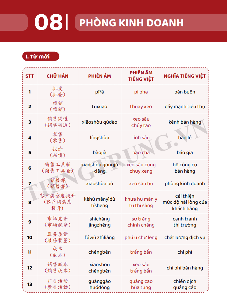 2.Sách được biên soạn dưới dạng song ngữ Việt – Trung cùng phiên âm quốc tế, phiên âm Việt Nam (phiên âm bồi) sẽ giúp ích rất nhiều cho việc học tập và thực hành khẩu ngữ. Mục tiêu của cuốn sách là giúp những người sở hữu nó có thể chinh phục được tiếng Trung, có cơ hội tăng lương, thăng chức.
