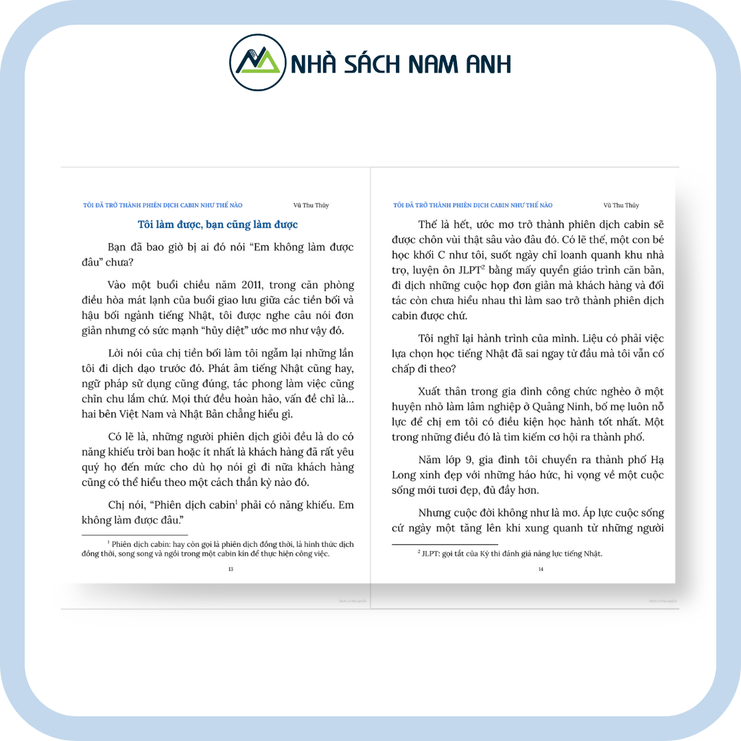 TÔI ĐÃ TRỞ THÀNH PHIÊN DỊCH CABIN NHƯ THẾ NÀO? – Lộ trình trở thành phiên dịch viên tiếng Nhật xuất sắc Thông tin sách: Tác giả: Vũ Thu Thủy Nhà phát hành: NXB Dân