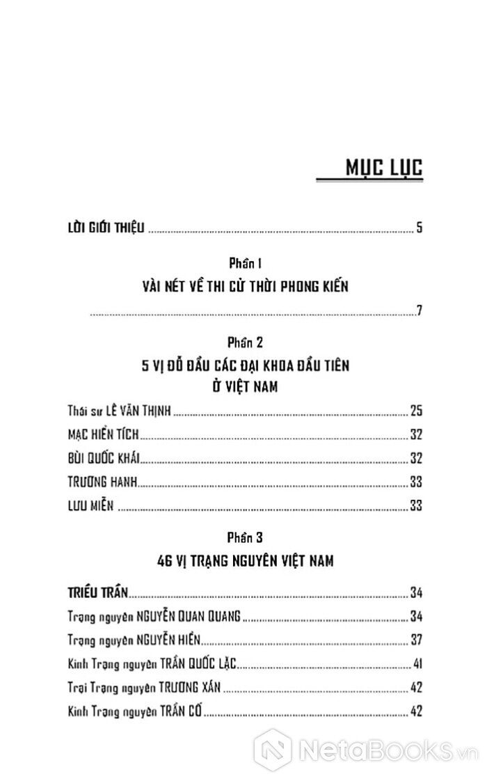 Mua tại TiktokTác giả: Nhiều tác giả Ngôn ngữ: tiếng Việt Số trang: 232 Năm xuất bản: 2024 Nhà xuất bản: Hà Nội Kích thước: 13 x 20 m Hình thức: bìa mềm Cuốn sách Trạng nguyên Việt Nam đem đến cho bạn đọc câu chuyện về những học trò nghèo nỗ lực học hành để đổ đạt như Trạng nguyên Nguyễn Nghiêu Tư, Nguyễn Trực,... Chuyện về Trạng nguyên Nguyễn Hiền tiêu biểu cho những người trẻ tuổi trong lịch sử Việt Nam có tài cao, danh vọng lớn, đổ trạng ở tuổi 13. Chuyện về thiên tài toán học Lương Thế Vinh với Khải minh toán học và Đại thành toán pháp; Trạng nguyên Trần Tất Văn viết văn đuổi được giặc; Trạng nguyên Nguyễn Bỉnh Khiêm với những giai thoại sấm Trạng Trình...