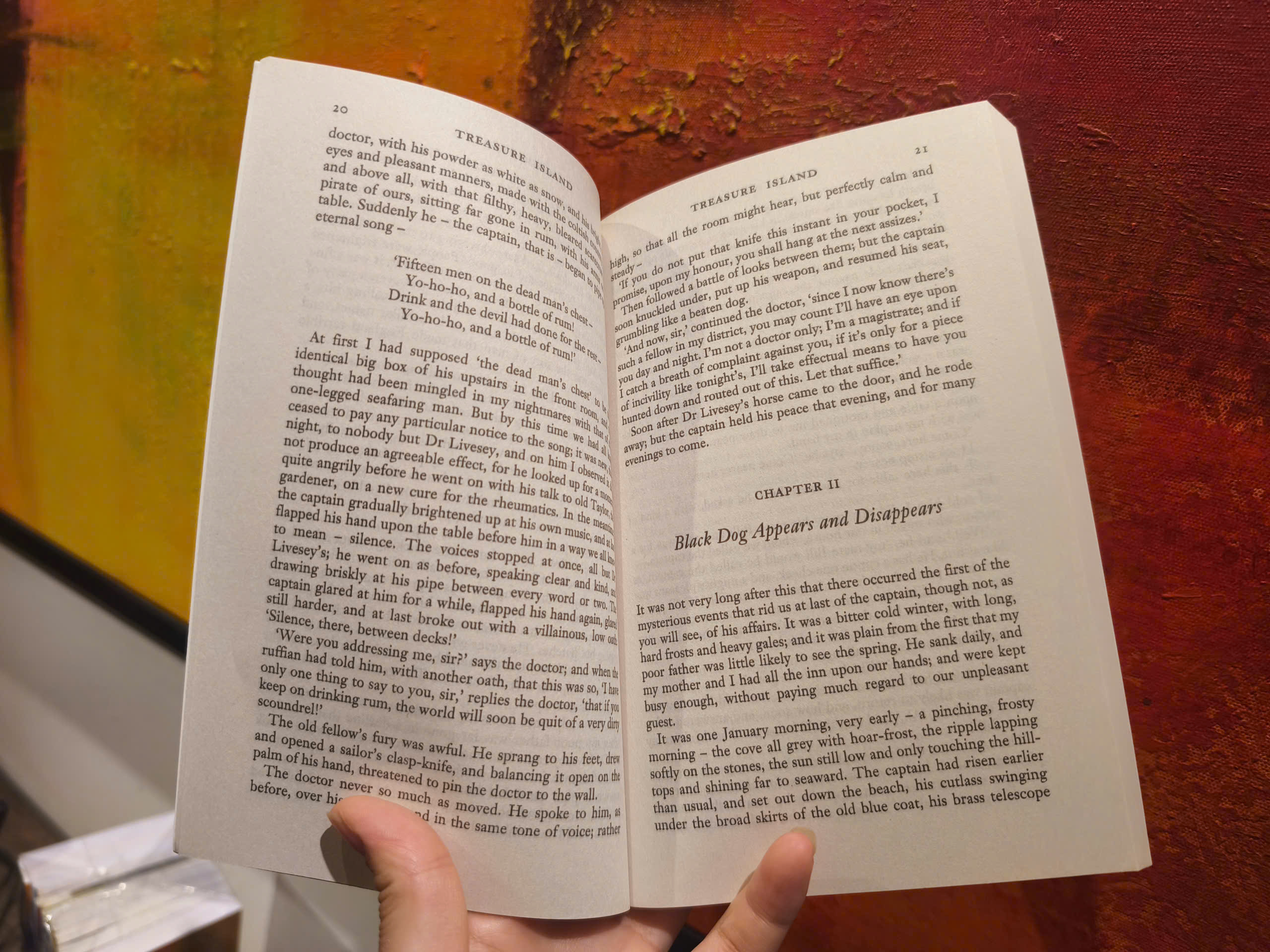 Treasure Island by Robert Louis Stevenson "Fifteen men on the dead man's chest-Yo-ho-ho and a bottle of rum!" Treasure Island is a tale of pirates and villains, maps, treasure and shipwreck, and is perhaps the best adventure story ever written. When young Jim Hawkins finds a packet in Captain Flint's sea chest, he could not know that the map inside it would lead him to unimaginable treasure. Shipping as cabin boy on the Hispaniola, he sails with Squire Trelawney, Captain Smollett, Dr Livesey, the sinister Long John Silver and a frightening crew to Treasure Island. There, mutiny, murder and mayhem lead to a thrilling climax.