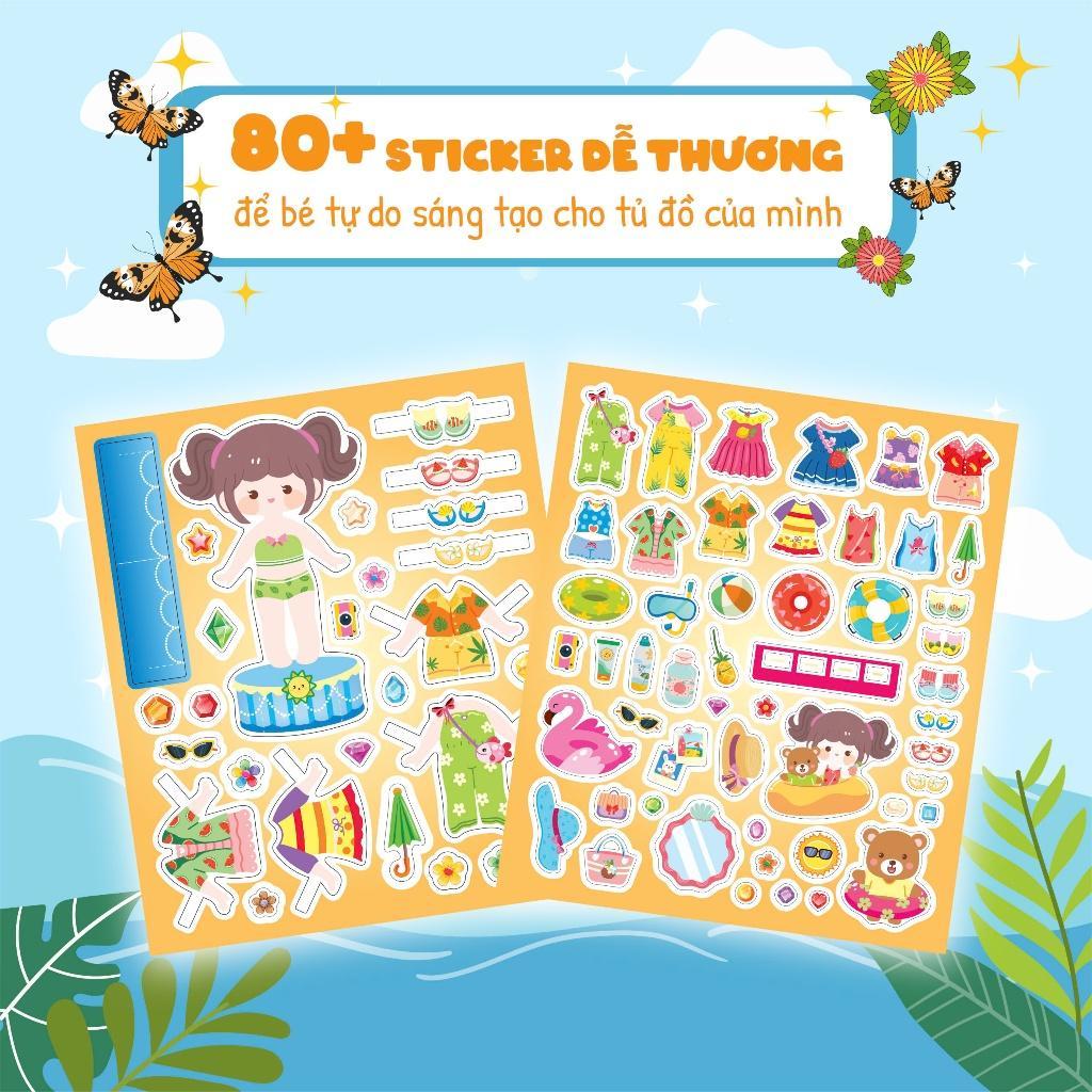 Sticker dễ thương: Gồm nhiều trang phục và phụ kiện phong phú, giúp bé thoải mái sáng tạo.