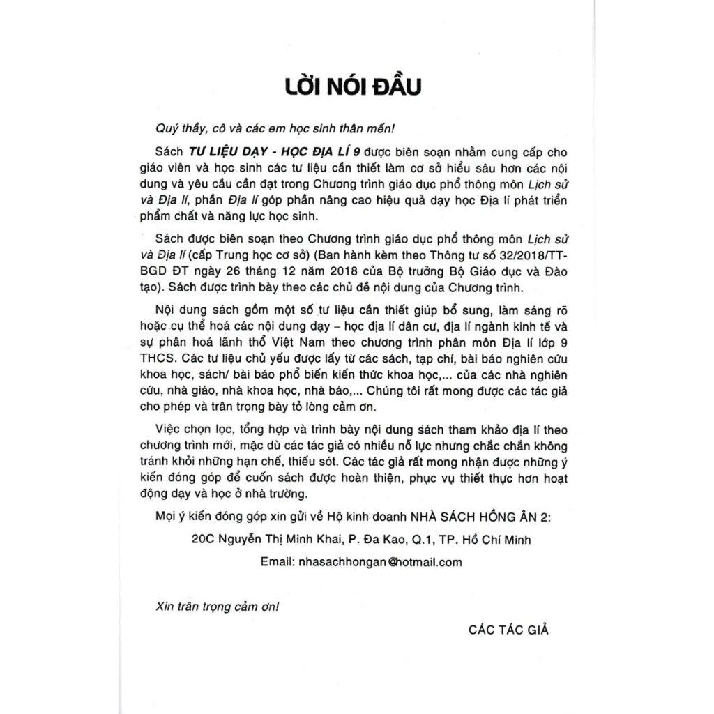 ✨SÁCH - Tư liệu dạy - học địa lí 9 (dùng chung cho các bộ sgk hiện hành) ha