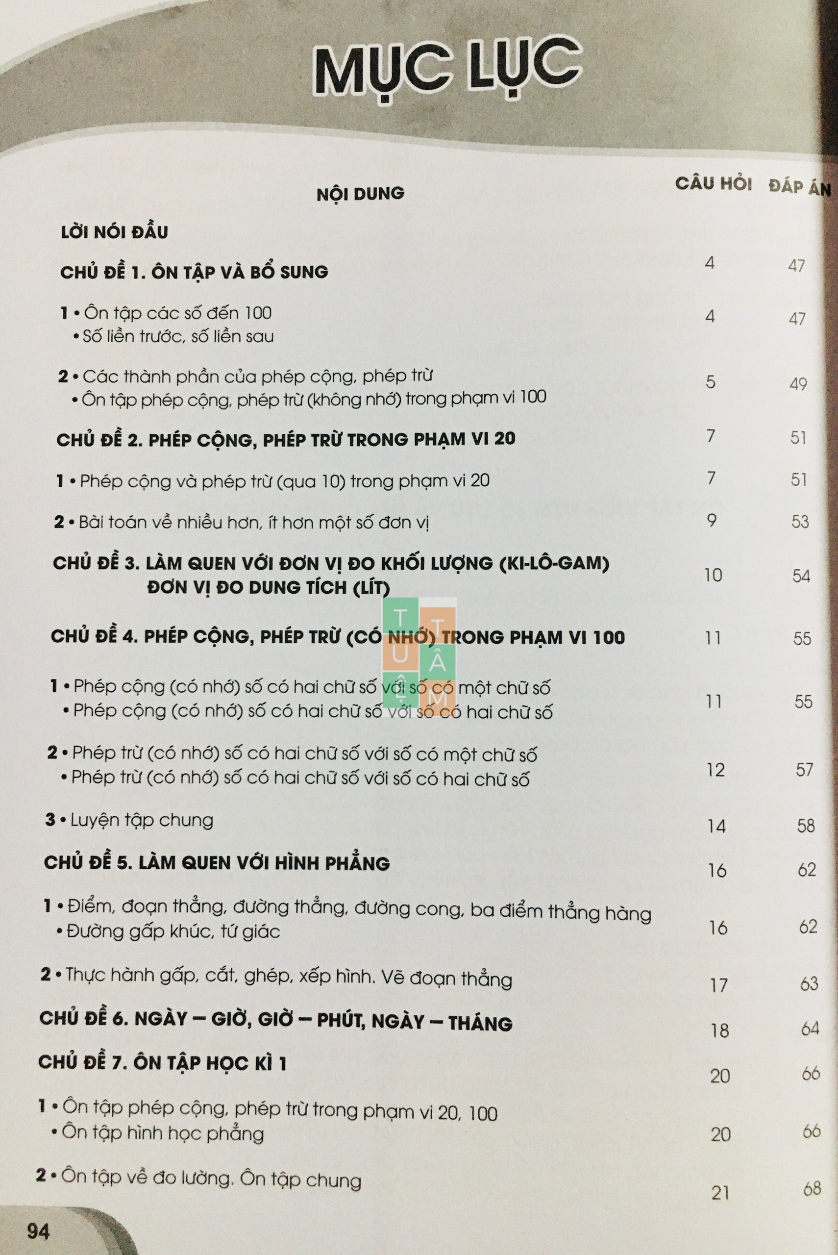 Cuốn sách sẽ là một tài liệu hữu ích giúp cho phụ huynh hướng dẫn con em học tập, đồng thời cũng là tài liệu giúp học sinh lớp 2 tự học tốt môn Toán.
