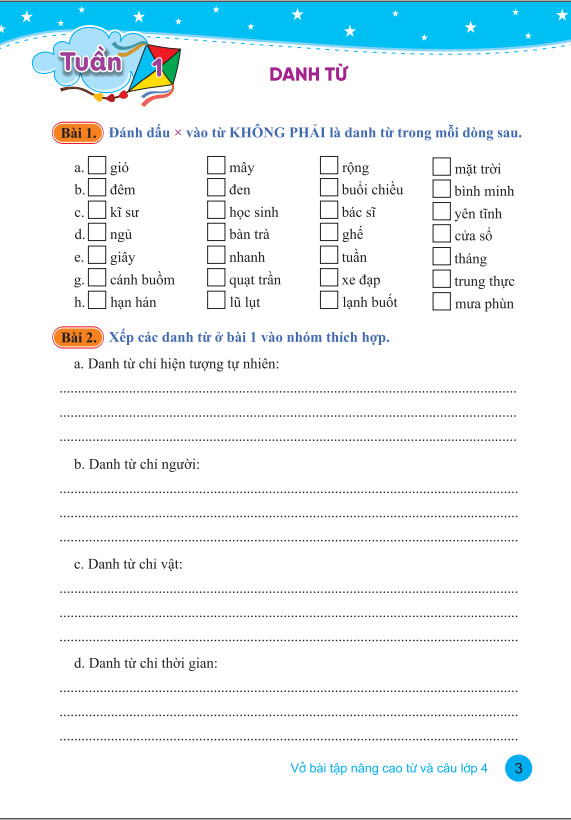 Mỗi phiếu trong cuốn sách sẽ tương ứng với nội dung một tuần học trên lớp của các em. Các em sẽ được tiếp thu các kiến thức về từ, tìm hiểu nghĩa của từ