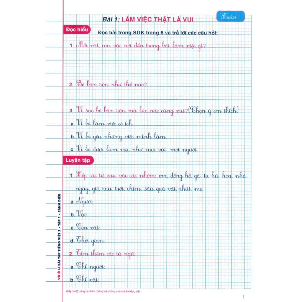 Vở Ô Li Bài Tập Tiếng Việt 2 - Tập 1 (Bám Sát SGK Cánh Diều)