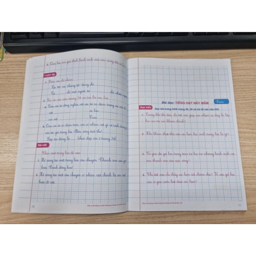tVới 2 bài học, mỗi tuần gồm các câu hỏi và bài tập được trình bày trên giấy ô li bằng kiểu chữ tiểu học hiện hành sẽ giúp các em vừa rèn được kĩ năng trả lời câu hỏi vừa rèn viết chữ được sạch, đẹp, trình bày rõ ràng.