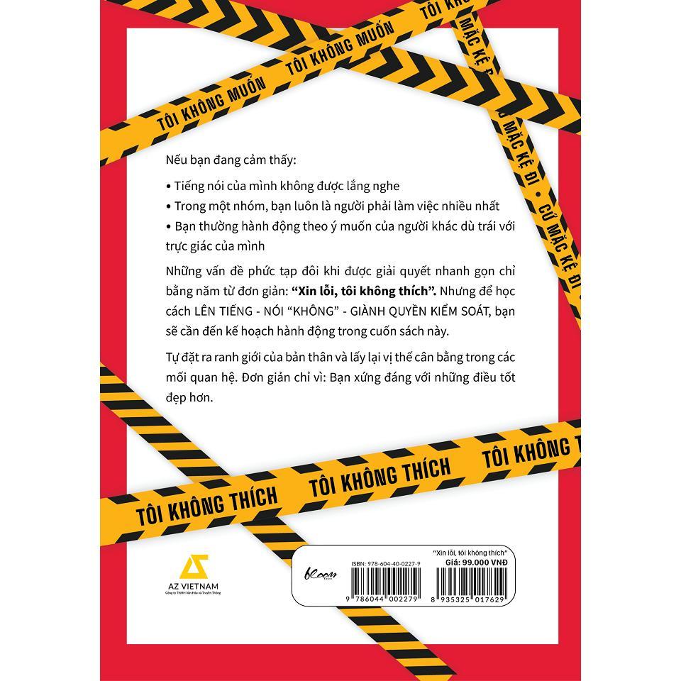 Những vấn đề tưởng chừng rất phức tạp đôi khi được giải quyết nhanh gọn chỉ bằng năm từ đơn giản: “Xin lỗi, tôi không thích.” Cuốn sách tập trung vào giải quyết vấn đề bằng cách đưa ra những phương pháp và ví dụ thực tế giúp bạn có thể nhìn nhận lại bản thân và cung cấp cho bạn kế hoạch hành động chi tiết trong 28 ngày để bạn có thể mạnh dạn LÊN TIẾNG - NÓI “KHÔNG” - GIÀNH LẠI QUYỀN KIỂM SOÁT.