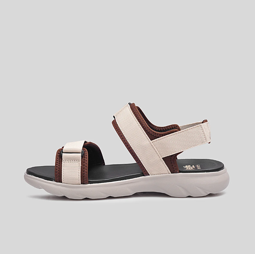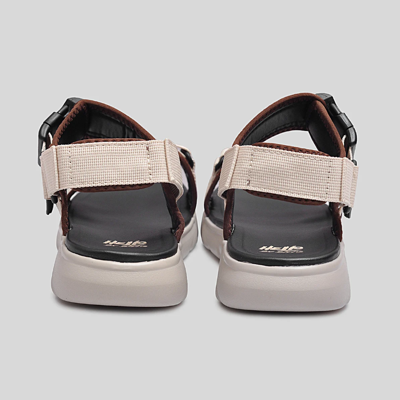 Dép sandal Helio BEB005000 nâu phối kem mang hơi hướng retro hiện đại, với phối màu nâu chocolate trầm ấm kết hợp đường viền kem nhẹ, cực kỳ hợp cho những bạn trẻ yêu thích phong cách tối giản – cổ điển pha chút cá tính.